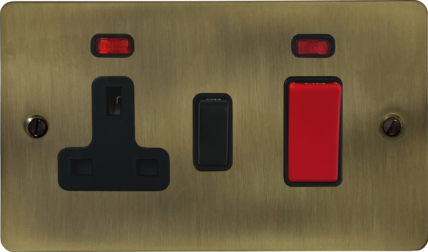 Flat Light Antique Brass Cooker Switch with Socket (Black Switch) - G+H FLAB29B