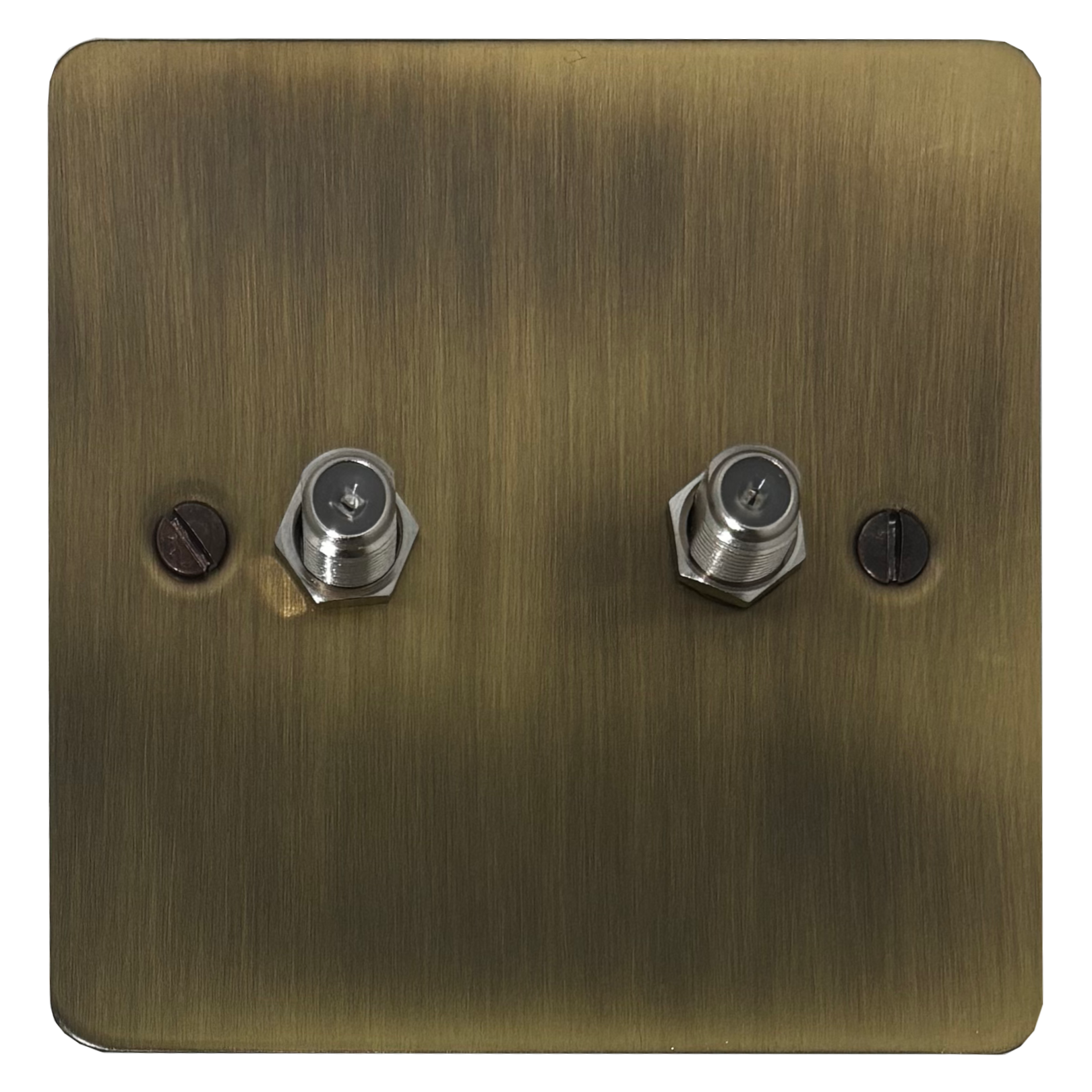 Flat Light Antique Brass Double Satellite Socket - G+H FLAB237