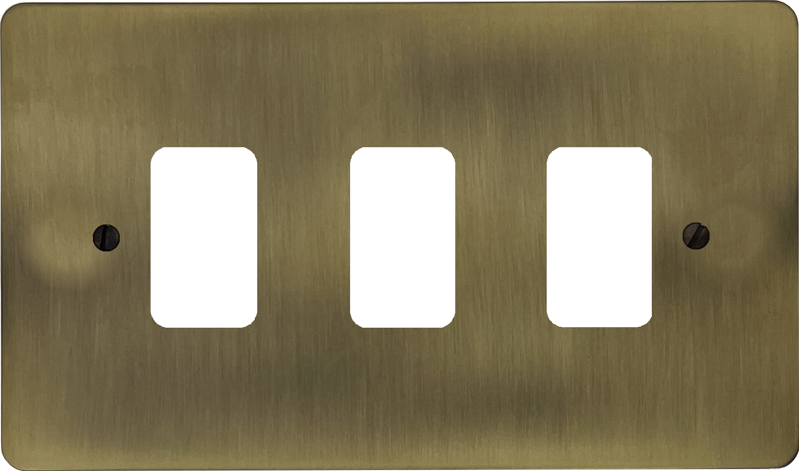 Flat Light Antique Brass Grid Plate (3 Gang) - G+H FLAB73