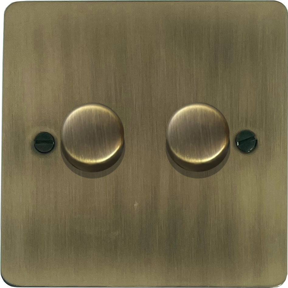 Flat Light Antique Brass LED Dimmer (2 Gang)