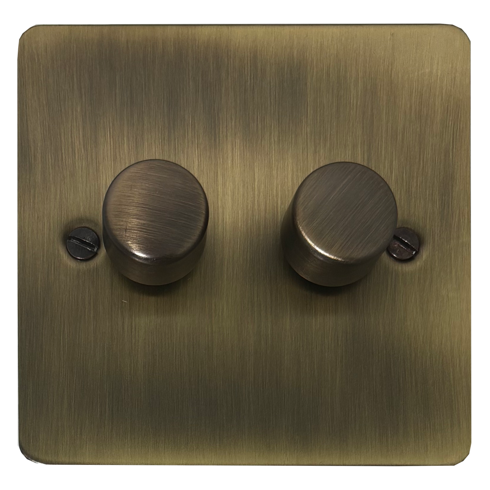Flat Light Antique Brass Push Dimmer (2 Gang/400W) - G+H FLAB12