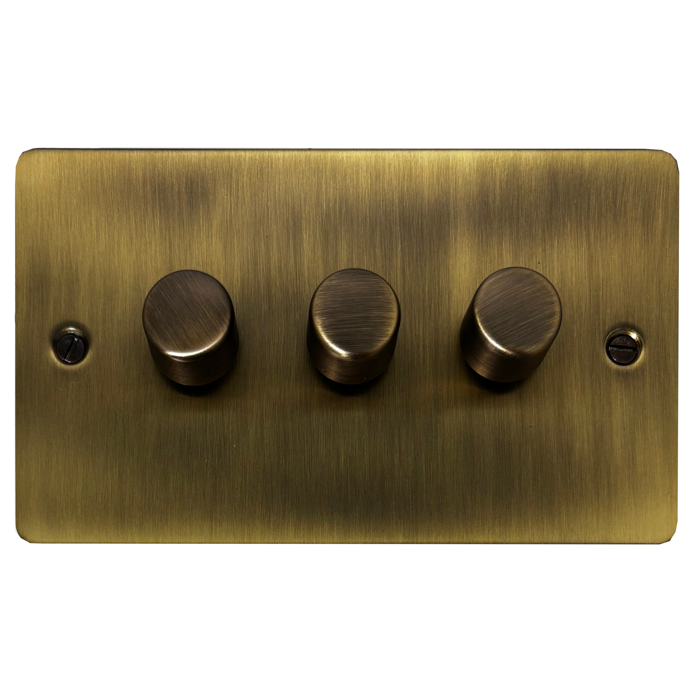Flat Light Antique Brass Push Dimmer (3 Gang/400W) - G+H FLAB13