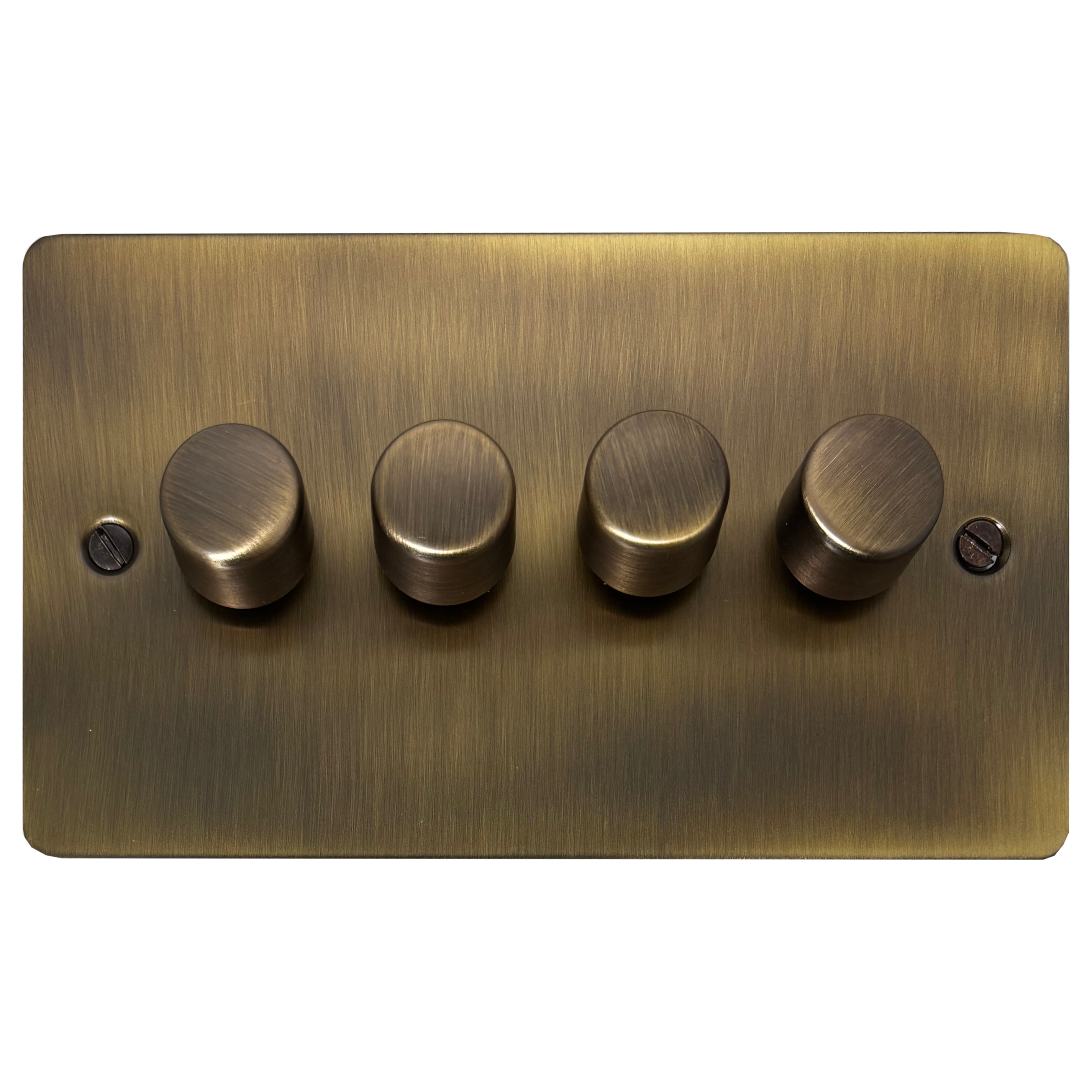 Flat Light Antique Brass Push Dimmer (4 Gang/400W) - G+H FLAB14
