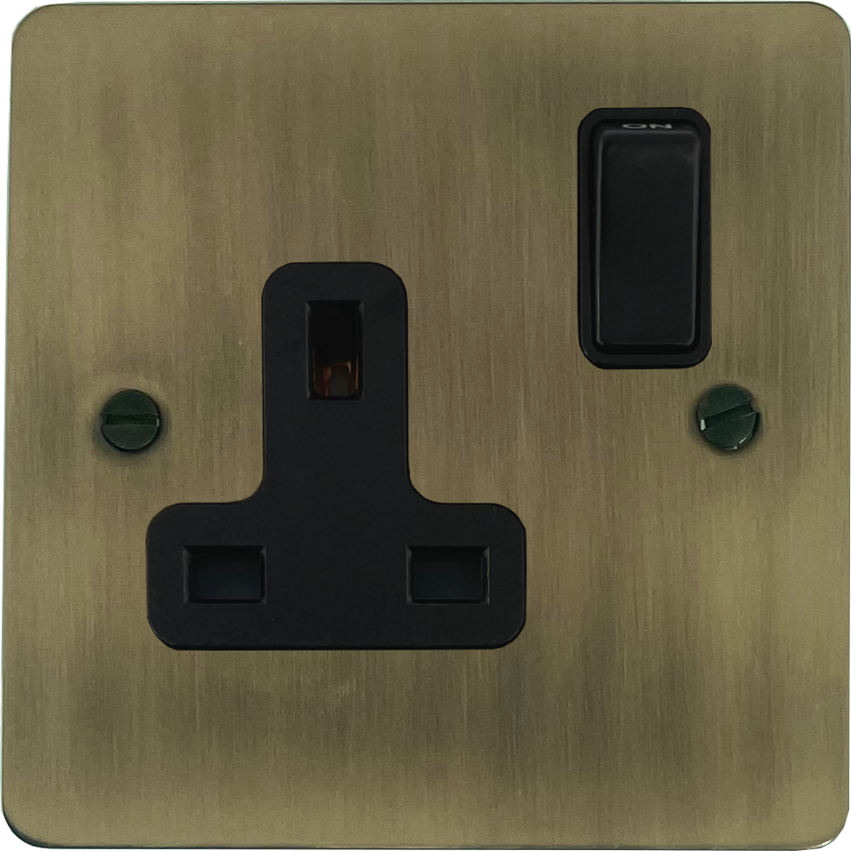 Flat Light Antique Brass Socket (1 Gang/Black Switch) - G+H FLAB9B