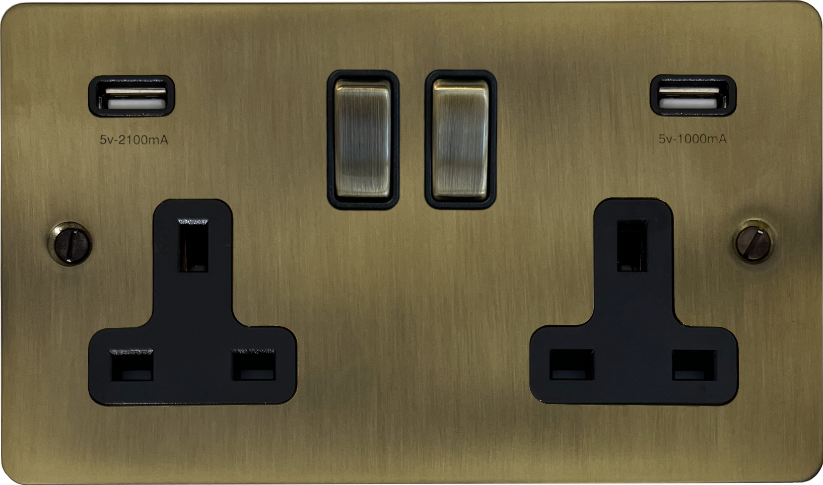 Flat Light Antique Brass Socket with USB (2 Gang) - G+H FLAB3910