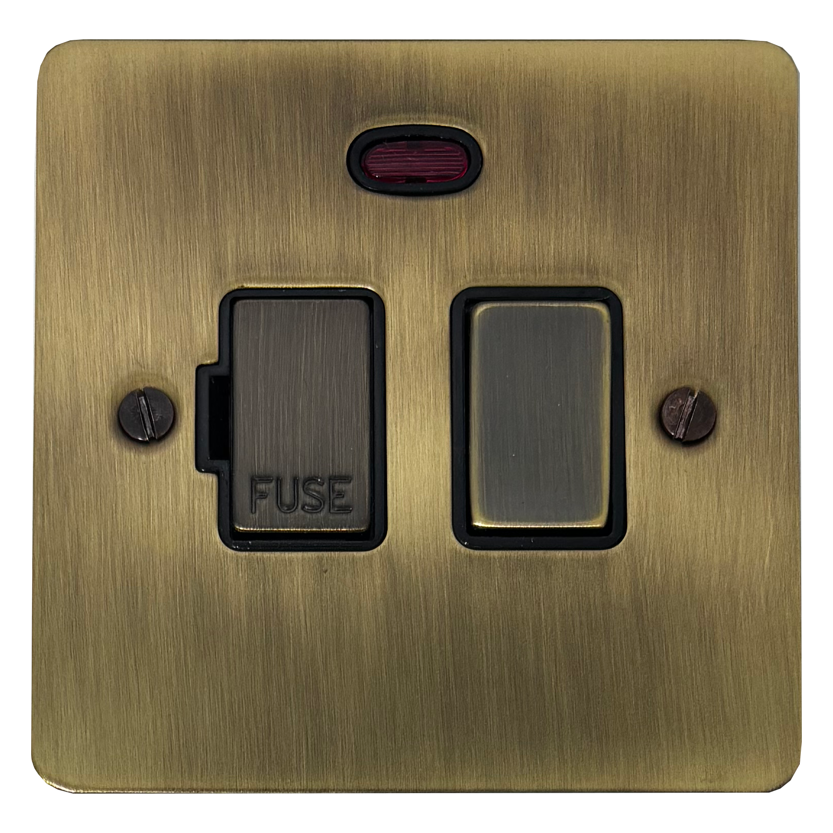 Flat Light Antique Brass Switched Fused Spur with Neon