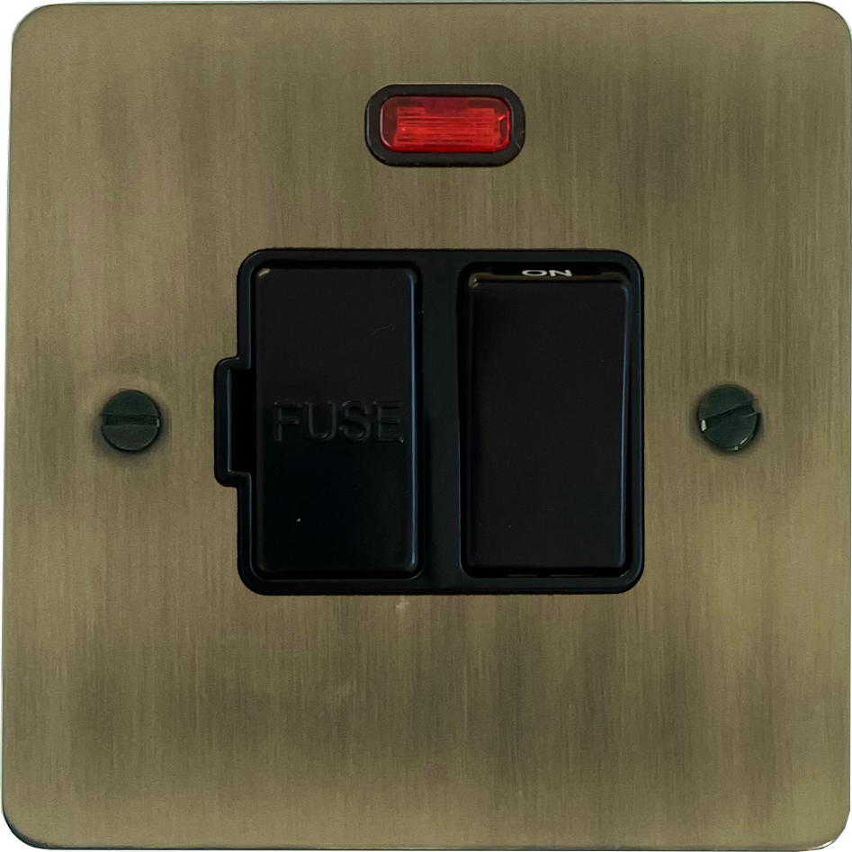 Flat Light Antique Brass Switched Fused Spur with Neon (Black Switch) - G+H FLAB27B