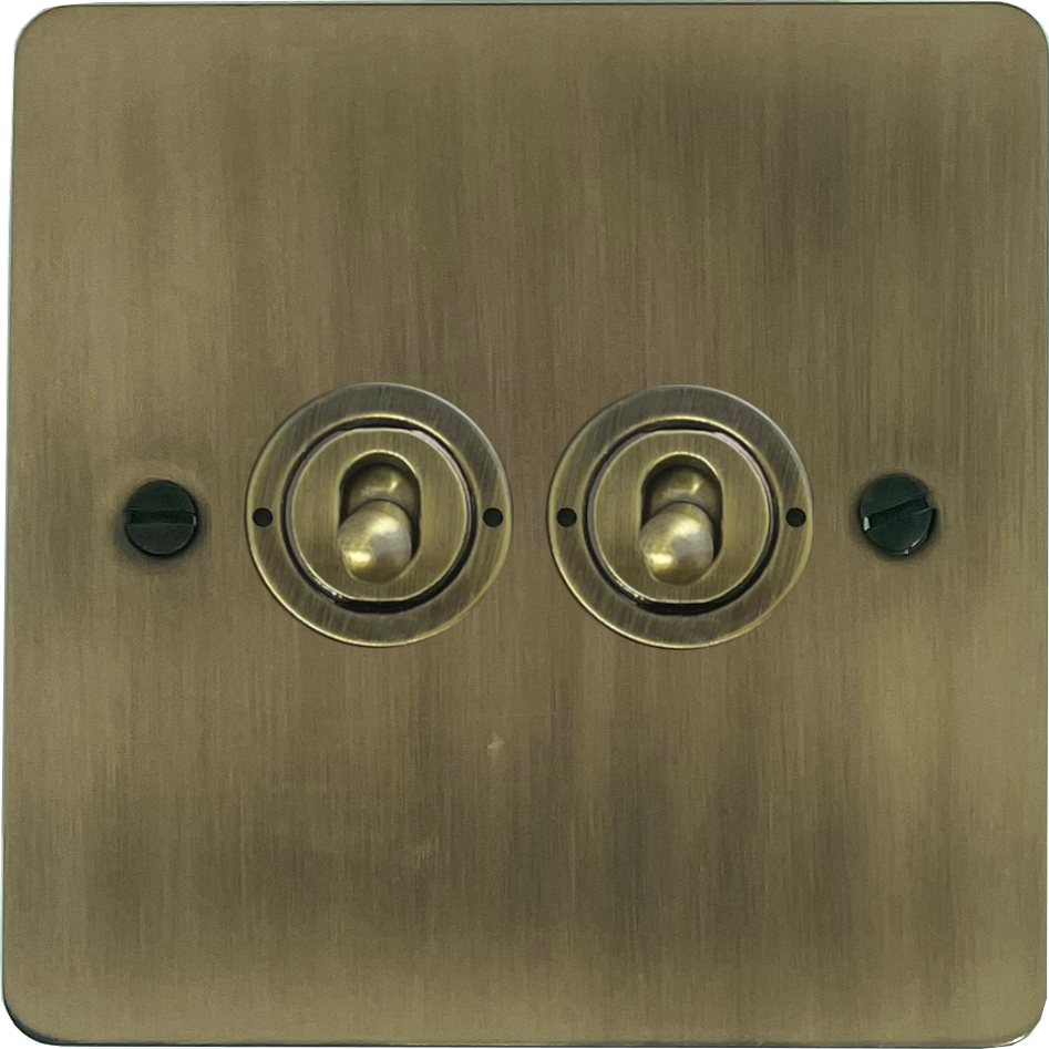 Flat Light Antique Brass Toggle Switch (2 Gang)