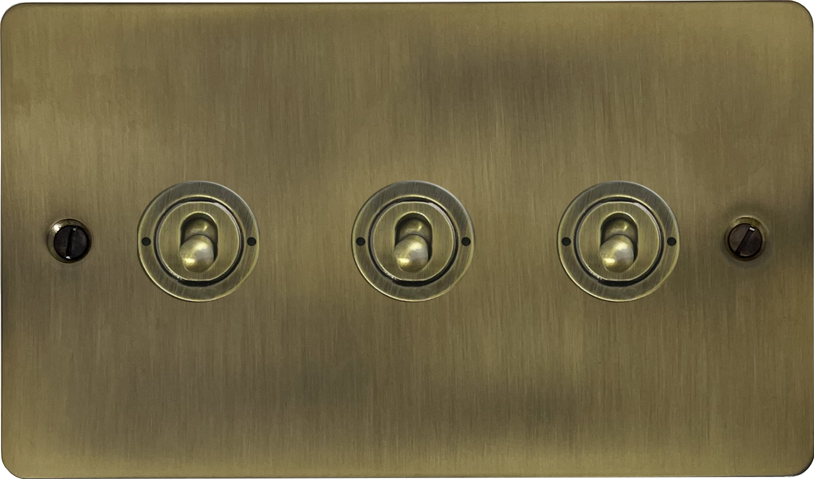 Flat Light Antique Brass Toggle Switch (3 Gang)