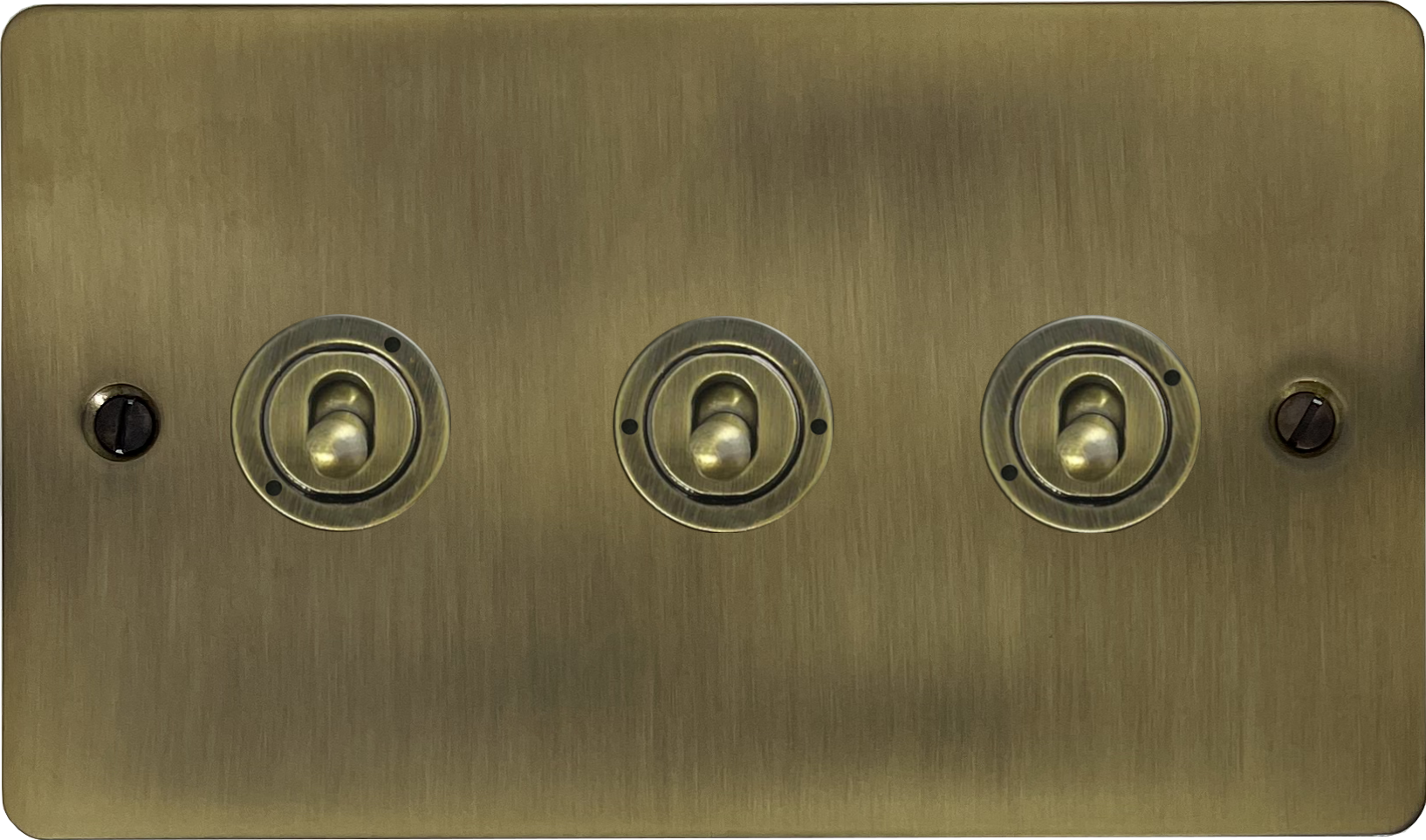 Flat Light Antique Brass Toggle Switch (3 Gang) - G+H FLAB383