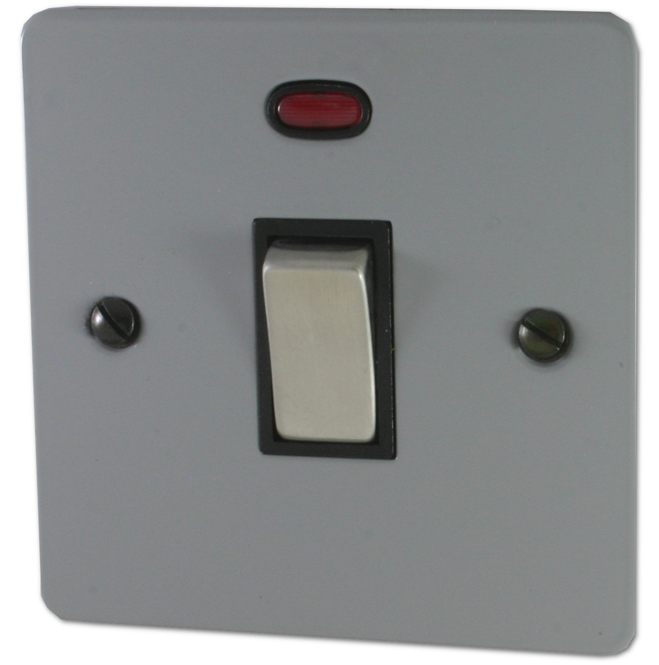 Flat light grey 20A DP Switch with Neon (Black insert/ Metal Switch) - G+H FLG326