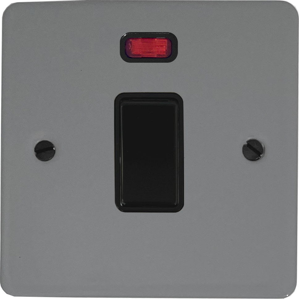 Flat light grey 20A DP Switch with Neon (Black Switch) - G+H FLG26B