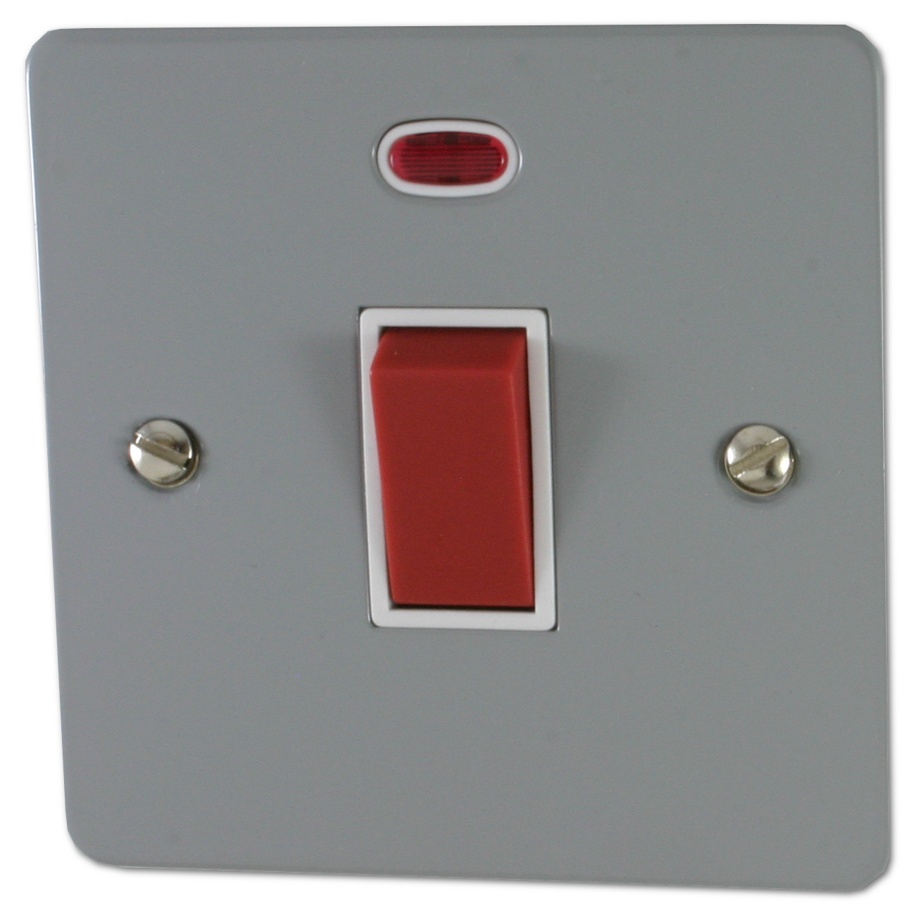 Flat light grey 45A DP Switch with Neon (White Insert/Red Switch) - G+H FLG46W
