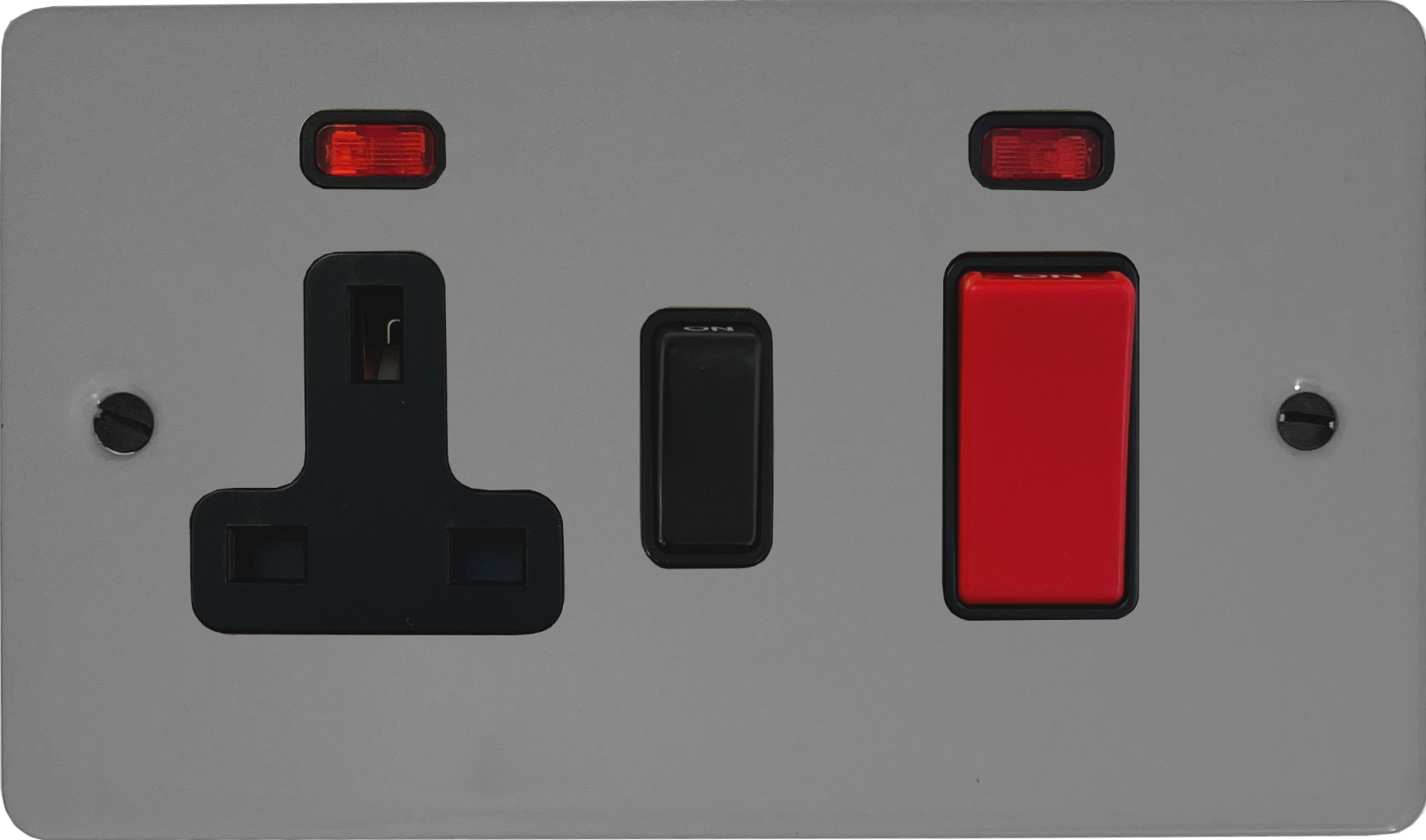 Flat light grey Cooker Switch with Socket (Black Switch) - G+H FLG29B