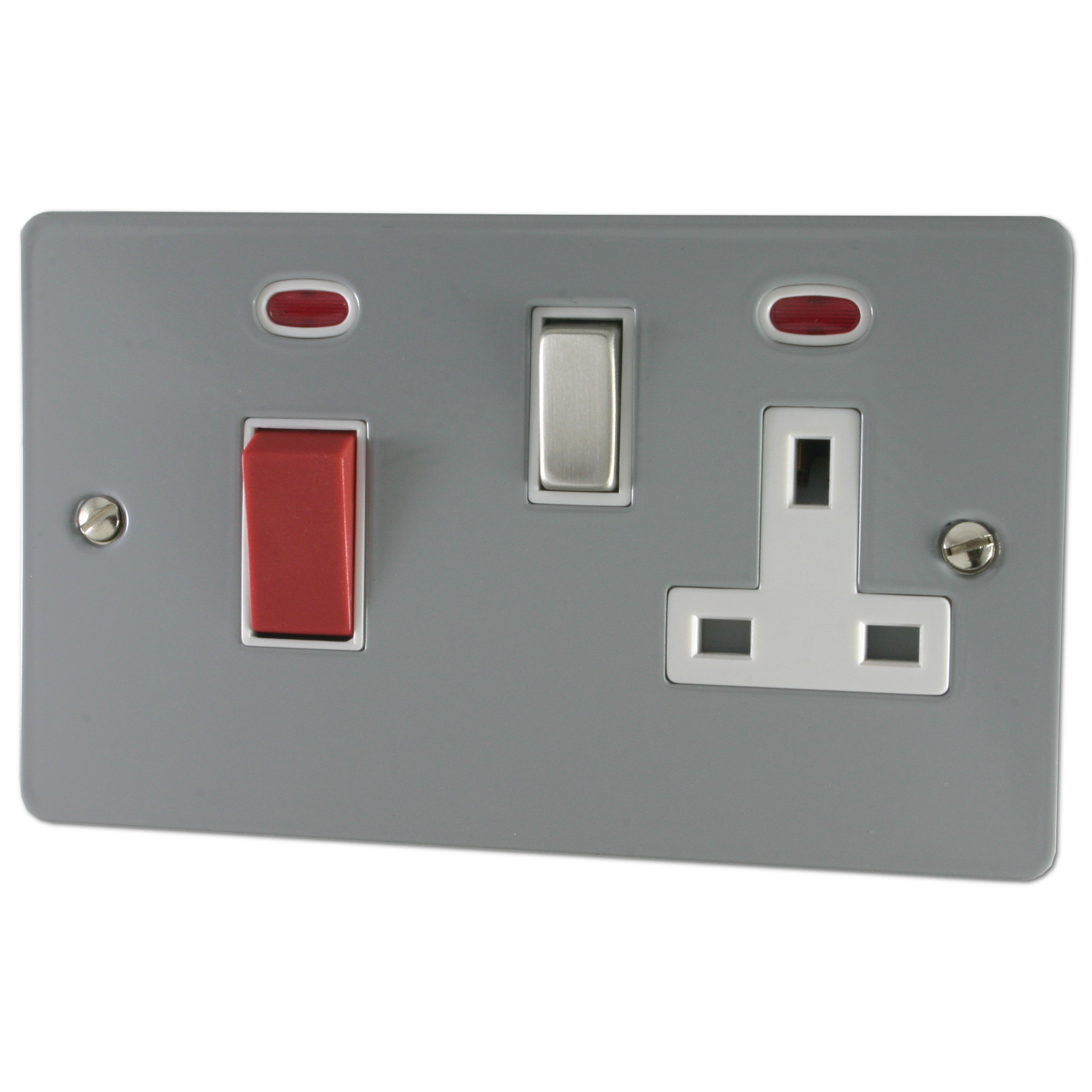 Flat light grey Cooker Switch with Socket (White insert/ Metal Switch) - G+H FLG229