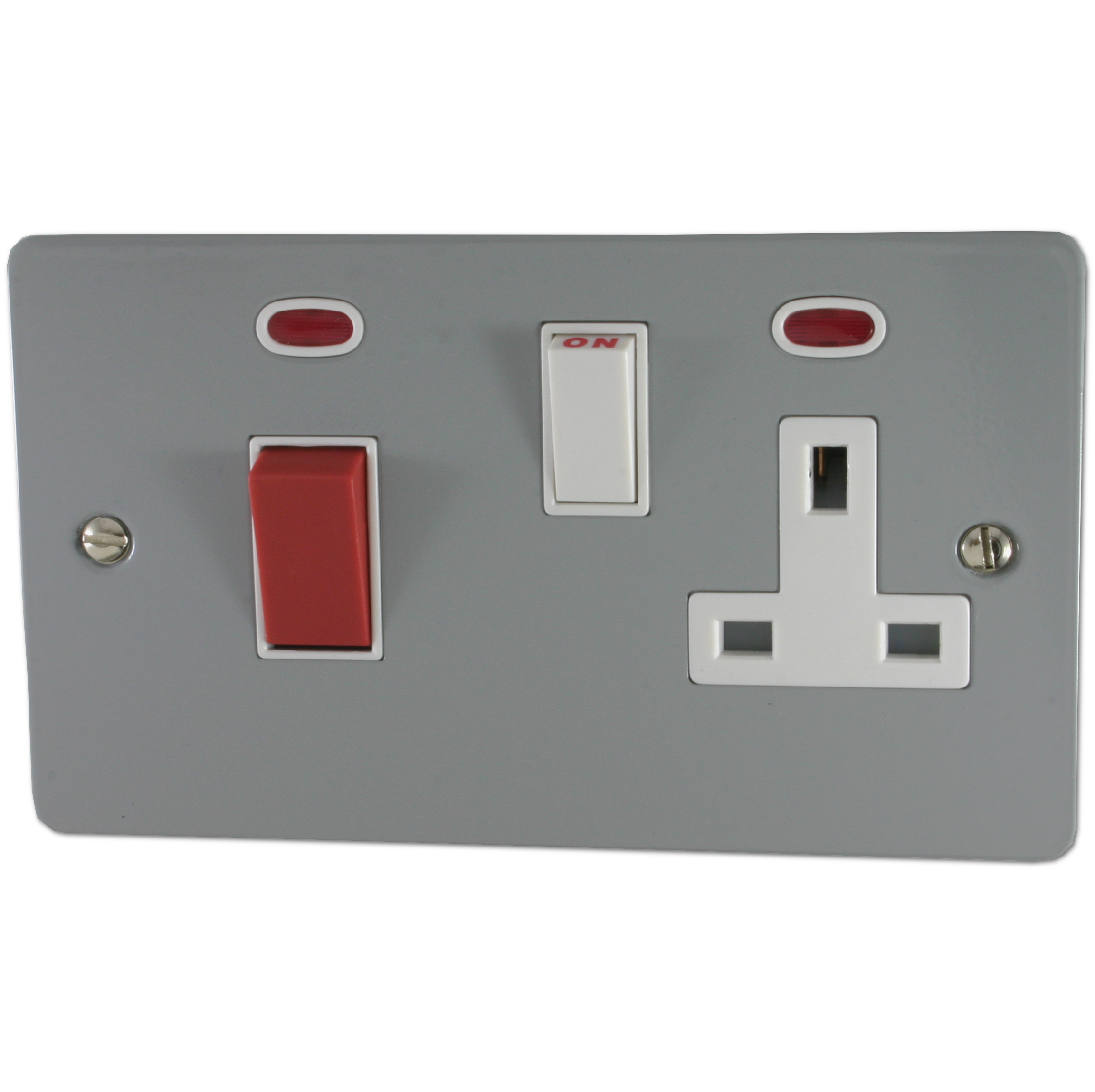 Flat light grey Cooker Switch with Socket (White Switch) - G+H FLG29W