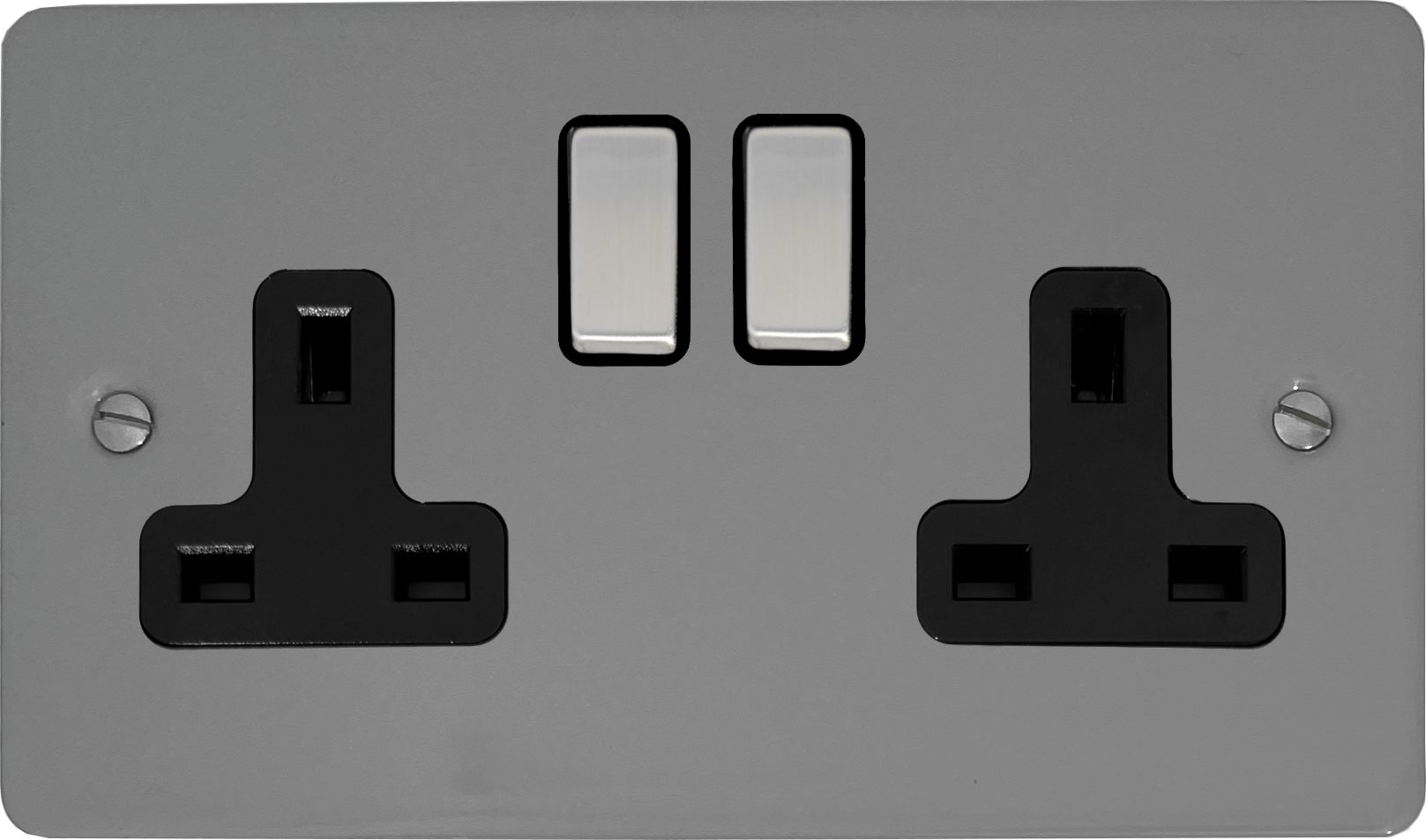 Flat light grey Double Socket (Black Insert/ Metal Switches) - G+H FLG310