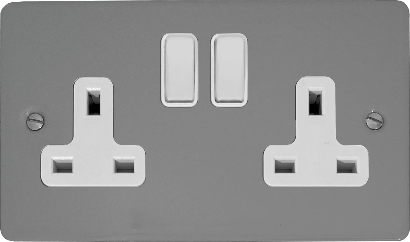 Flat light grey Double Socket (White Switches) - G+H FLG10W