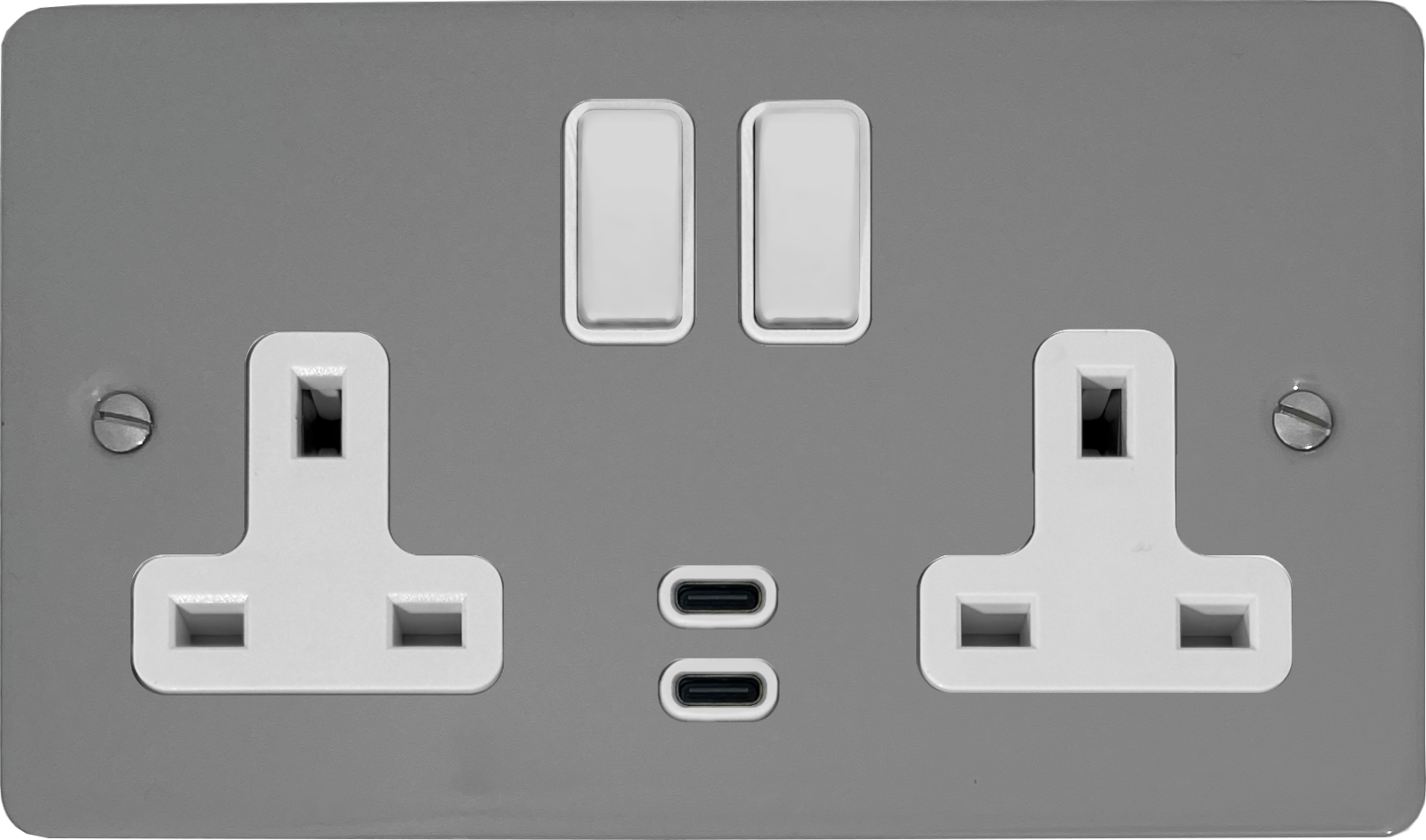 Flat light grey Double Socket with Dual USB-C (White Switches)