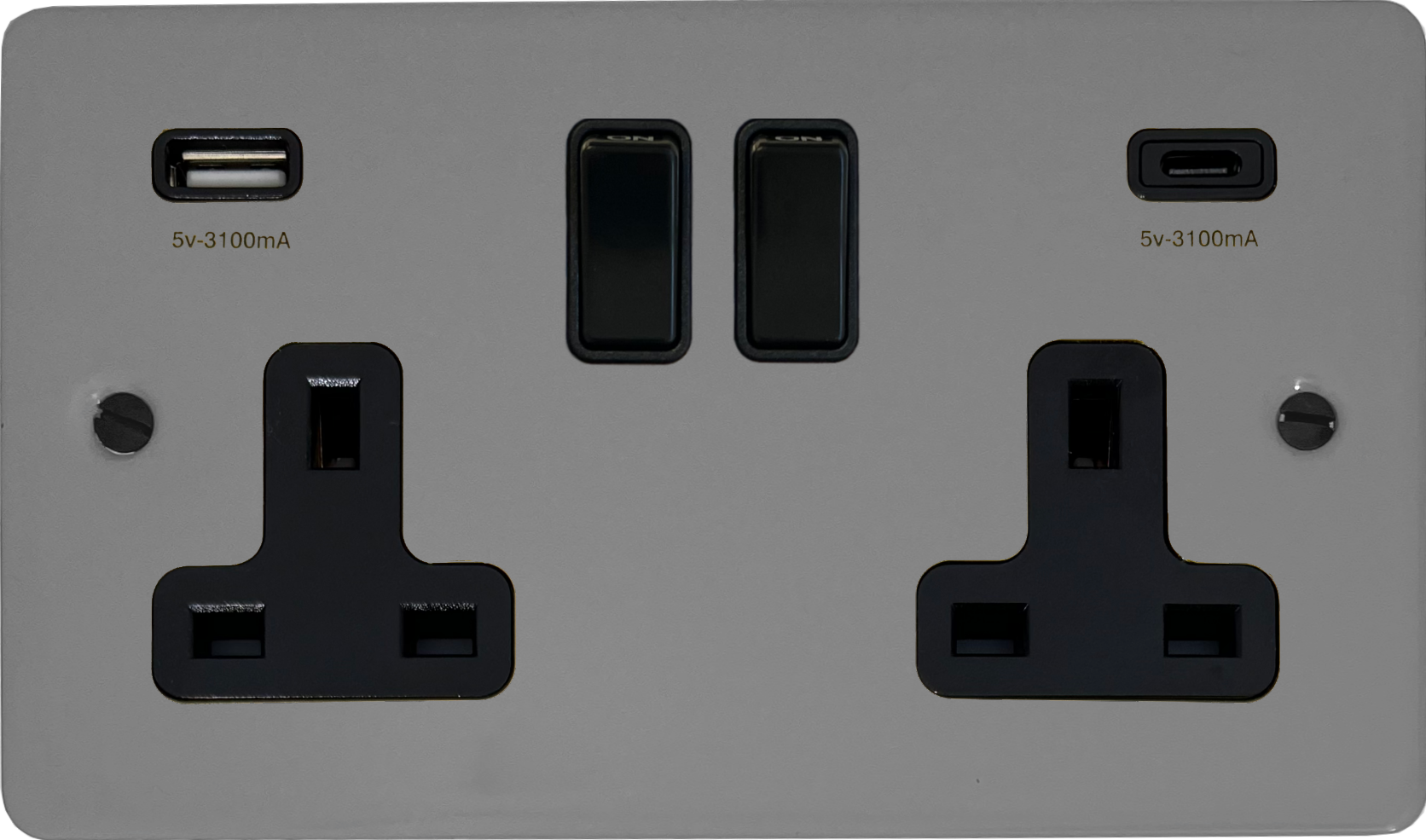 Flat light grey Double Socket with USB (USB-A and USB-C/Black Switches) - G+H FLG911B