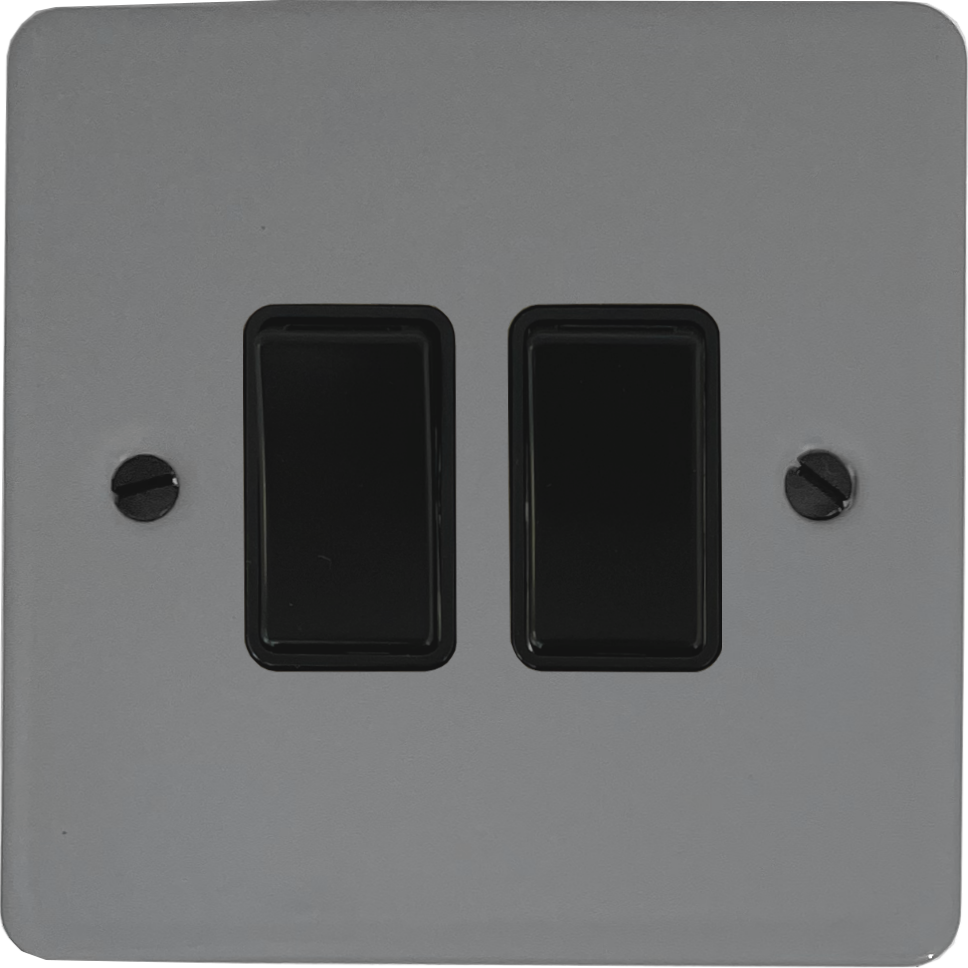 Flat light grey Light Switch (2 Gang/Black Switches) - G+H _FLG402