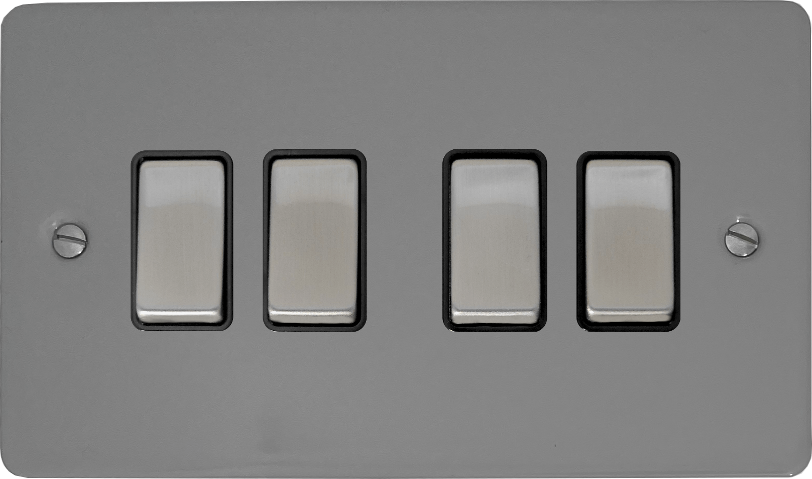Flat light grey Light Switch (4 Gang/Black insert/ Metal Switches) - G+H FLG304