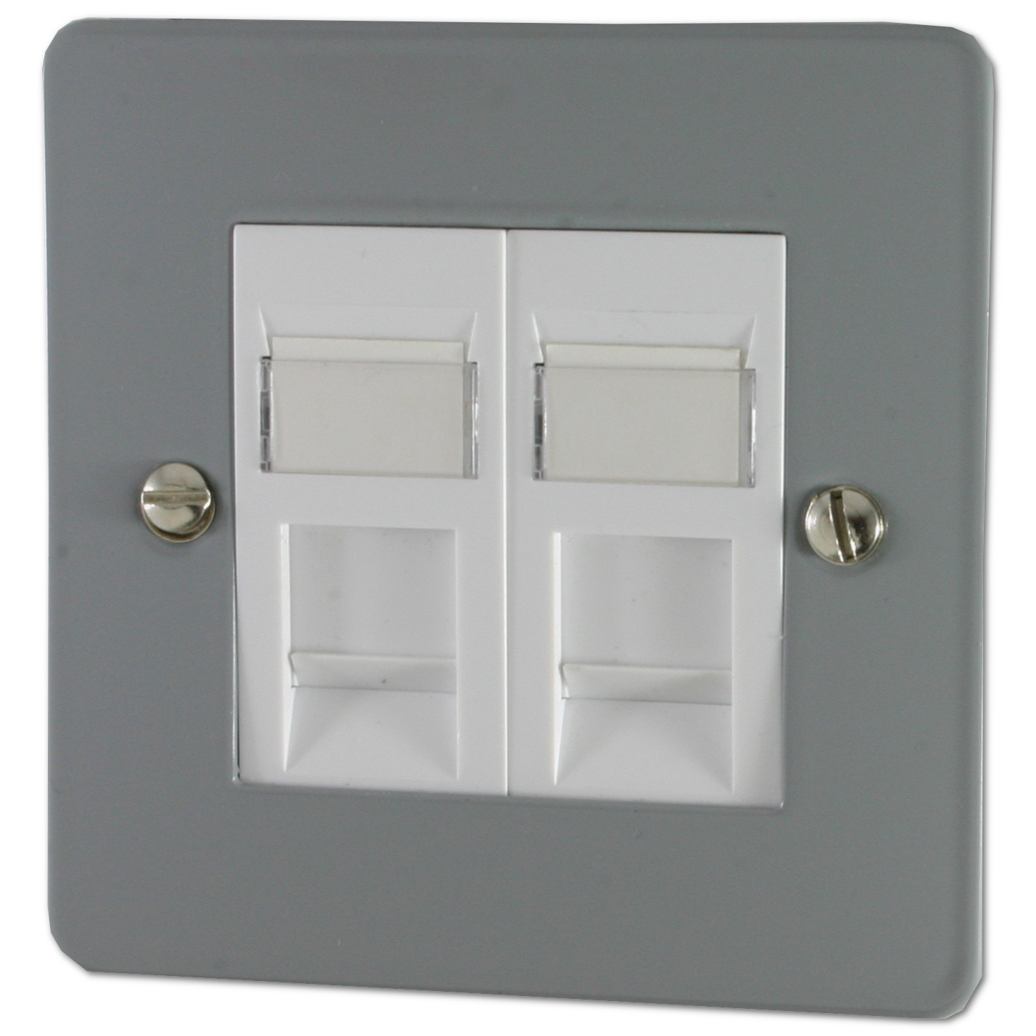 Flat light grey RJ45 Socket (White insert/2 Gang) - G+H FLG62W
