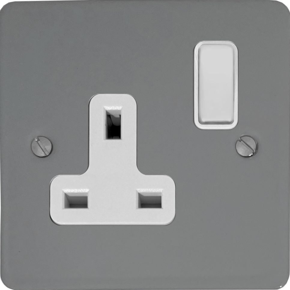 Flat light grey Single Socket (White Switch) - G+H FLG9W