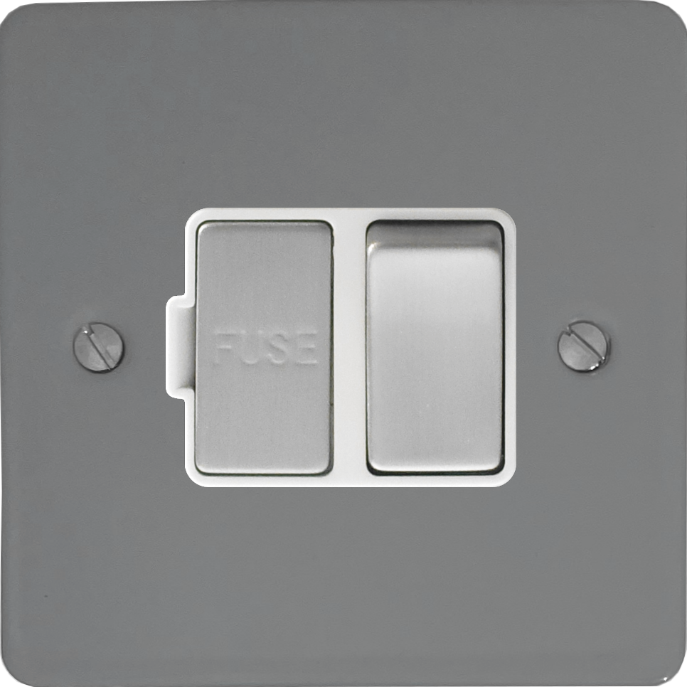 Flat light grey Switched Fused Spur (White insert/Metal Switch) - G+H FLG257