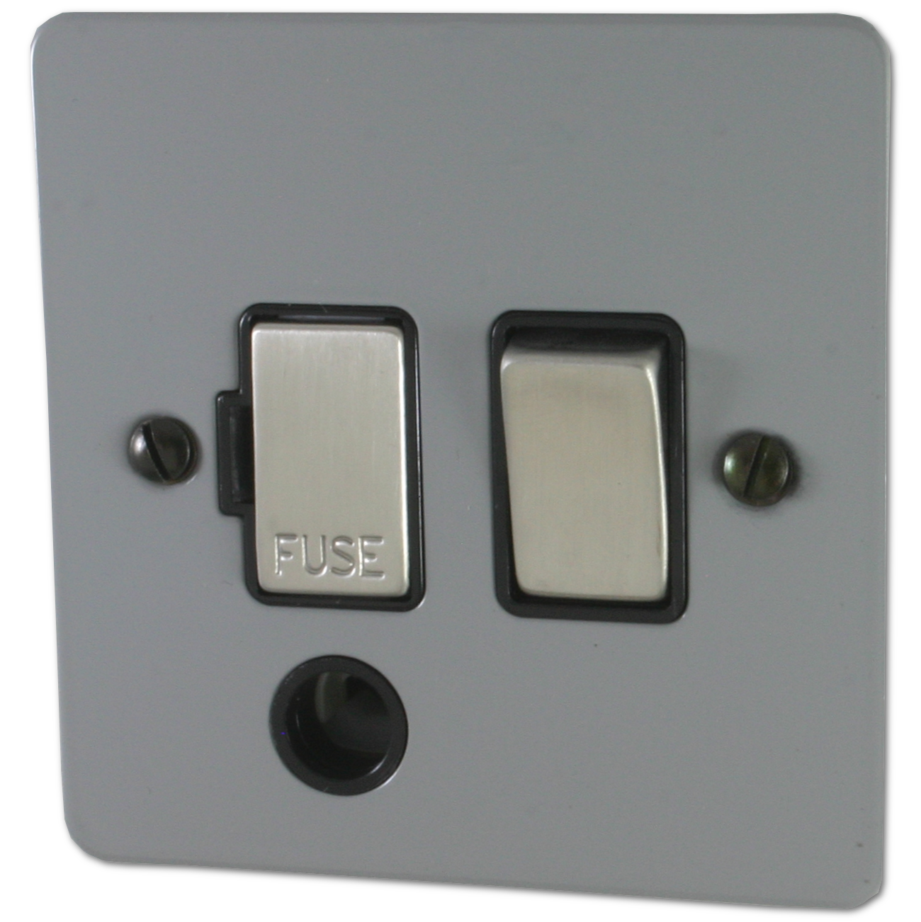Flat light grey Switched Fused Spur with Flex Outlet (Black Insert/ Metal Switch) - G+H FLG356