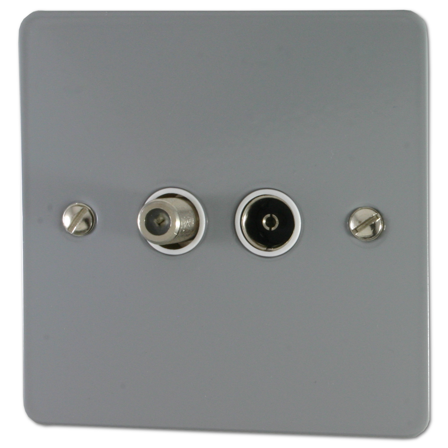 Flat light grey TV/Satellite Socket (White Insert) - G+H FLG38W