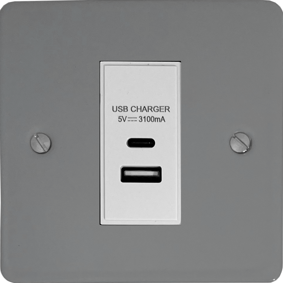 Flat light grey USB Charger (USB-A and USB-C) (White Insert/1 Gang) - G+H FLG41W