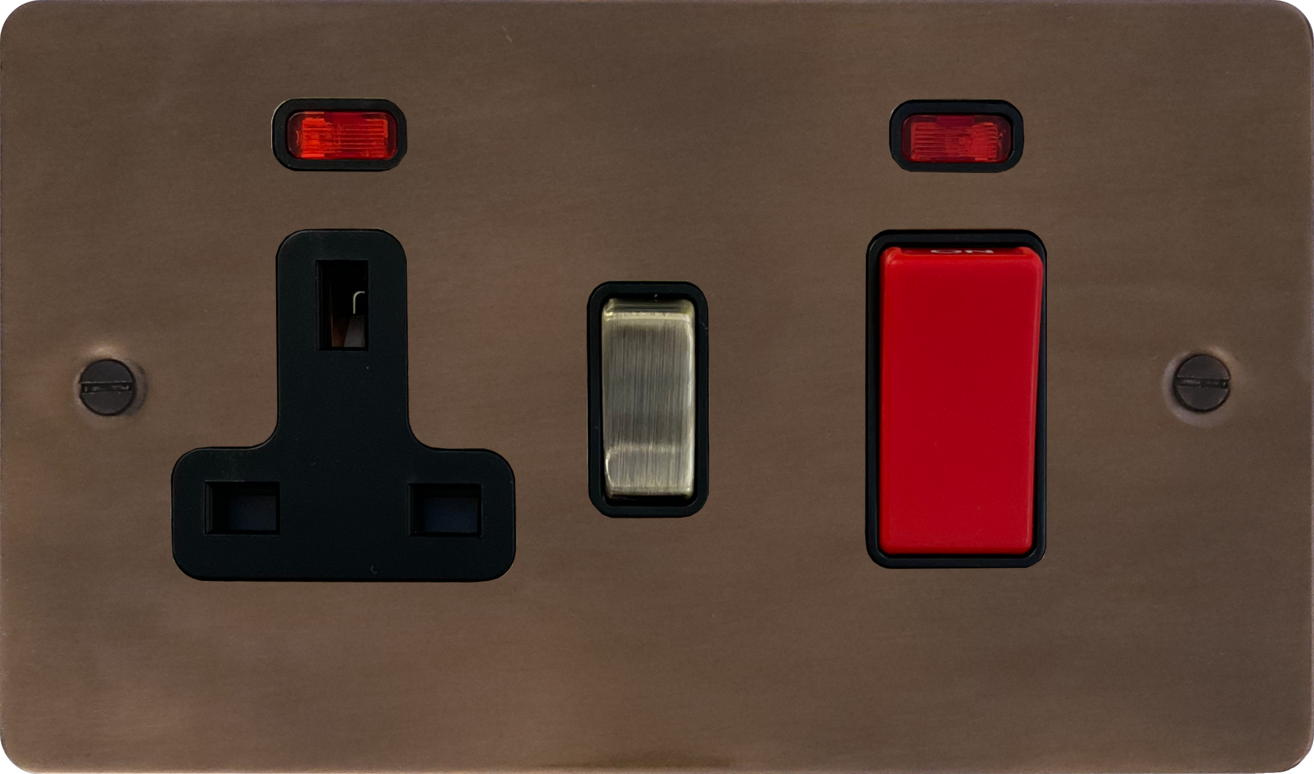 Flat Medium Bronze Cooker Switch with Socket (Black inserts/Red/Antique Brass Switch)