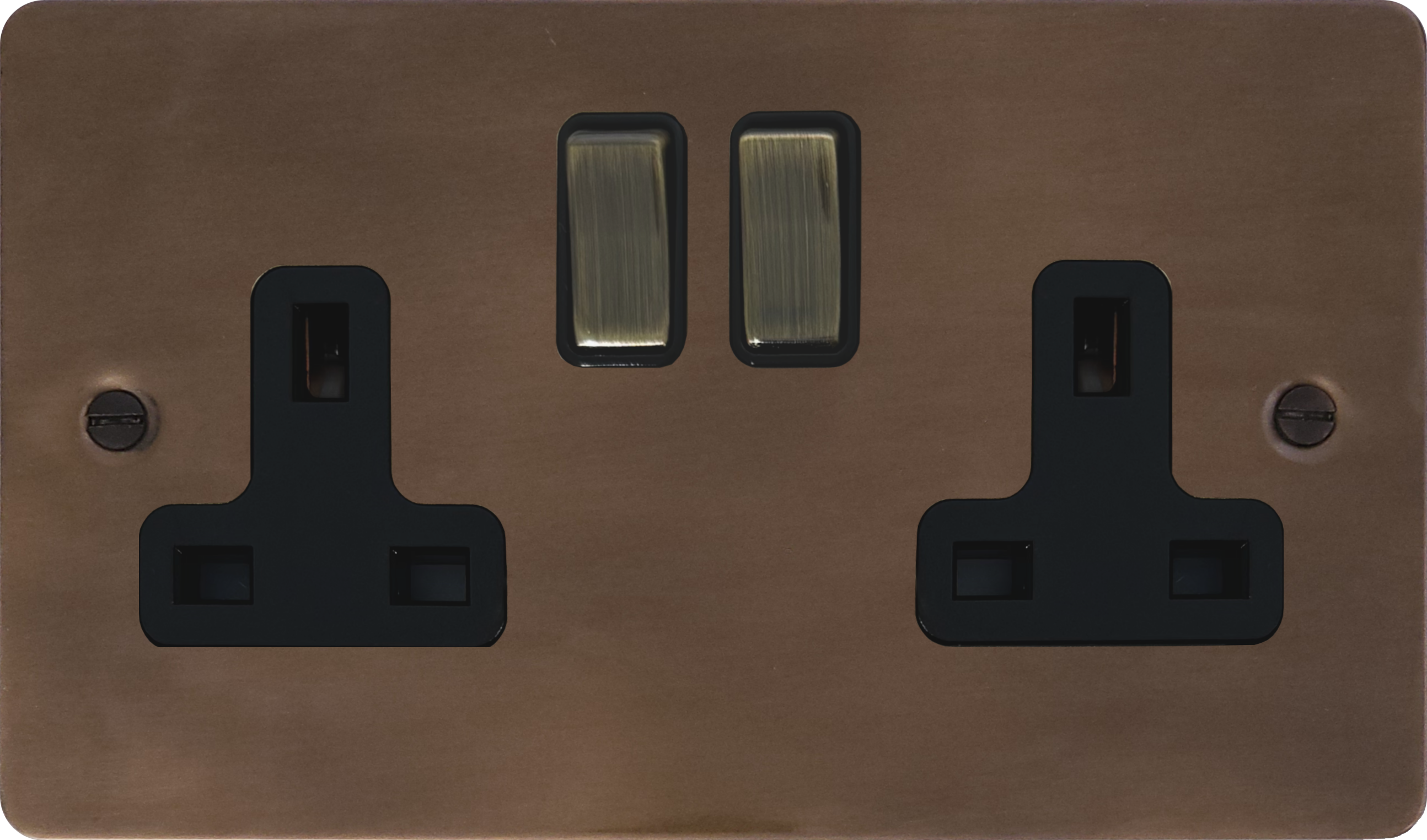 Flat Medium Bronze Double Socket (Black Insert/Antique Brass Switches)