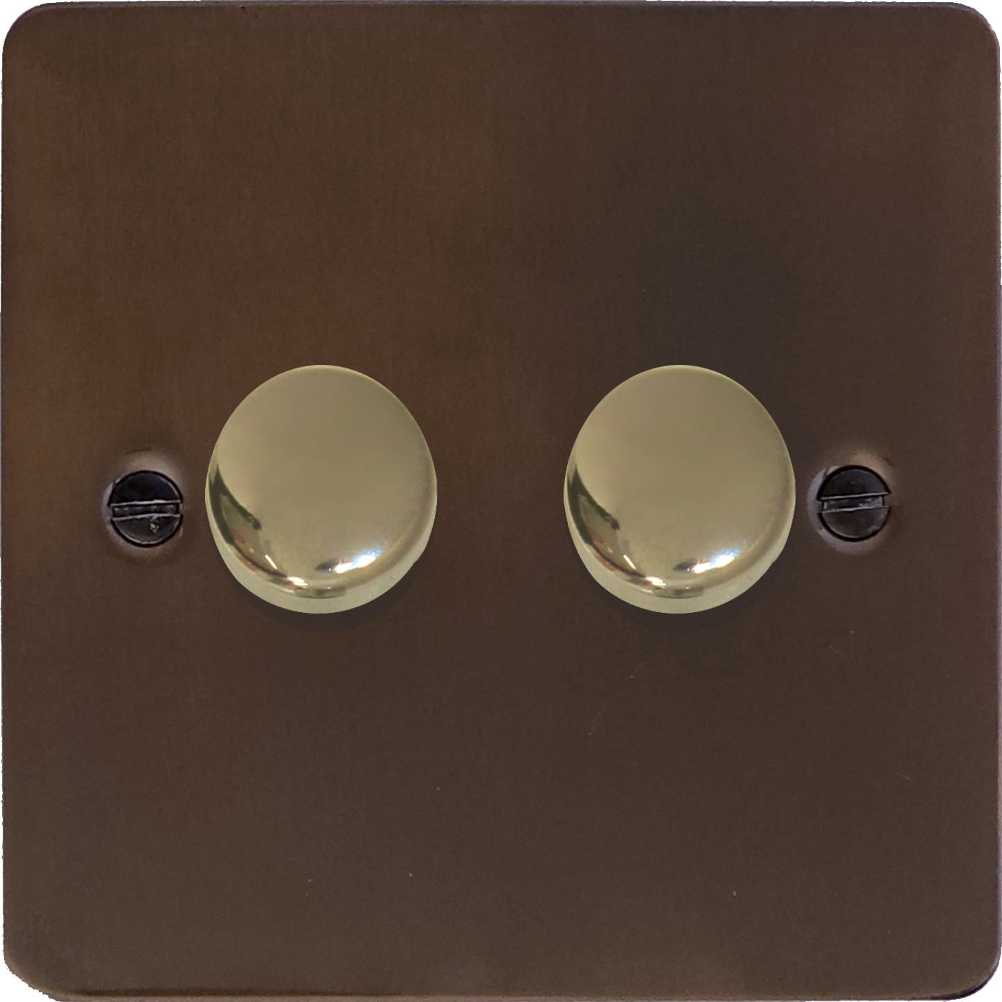 Flat Medium Bronze LED Dimmer (2 Gang/Polished Brass Caps)