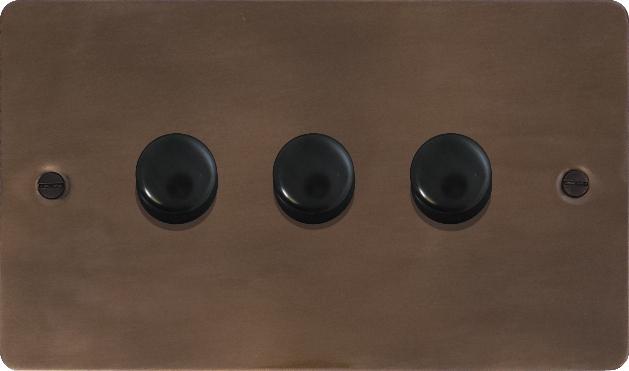 Flat Medium Bronze LED Dimmer (3 Gang/Black Caps)