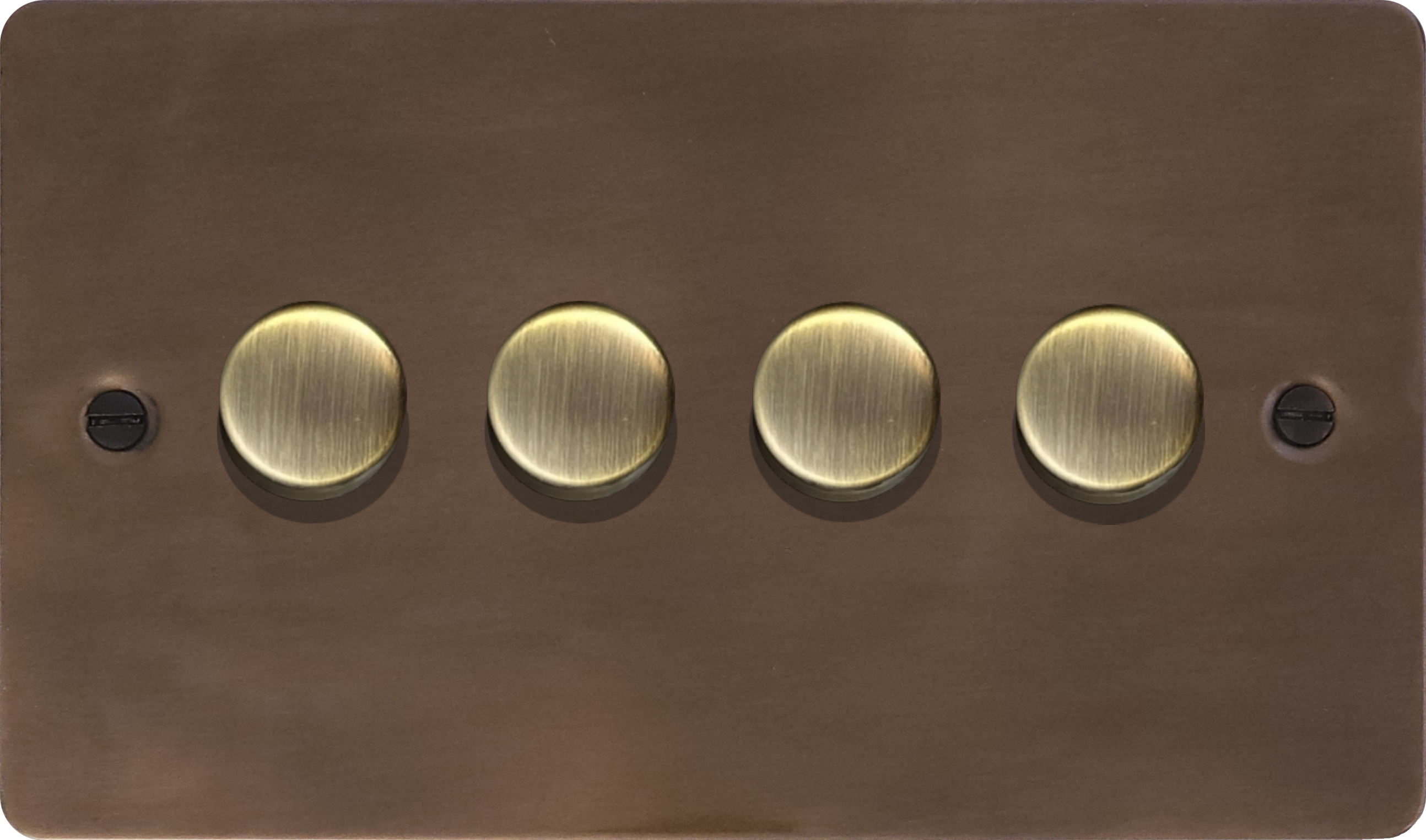 Flat Medium Bronze LED Dimmer (4 Gang/Antique Brass Caps)