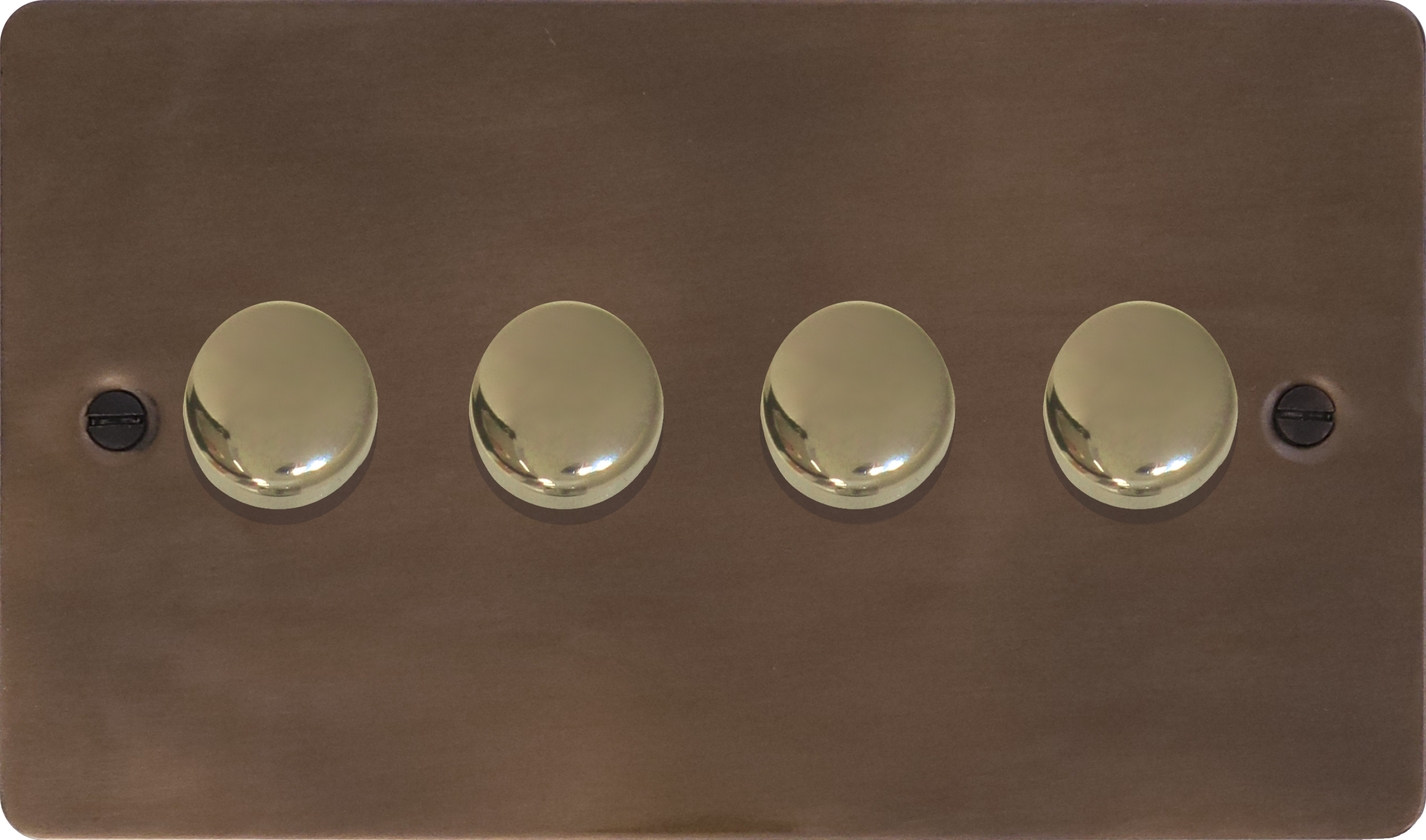 Flat Medium Bronze LED Dimmer (4 Gang/Polished Brass Caps)