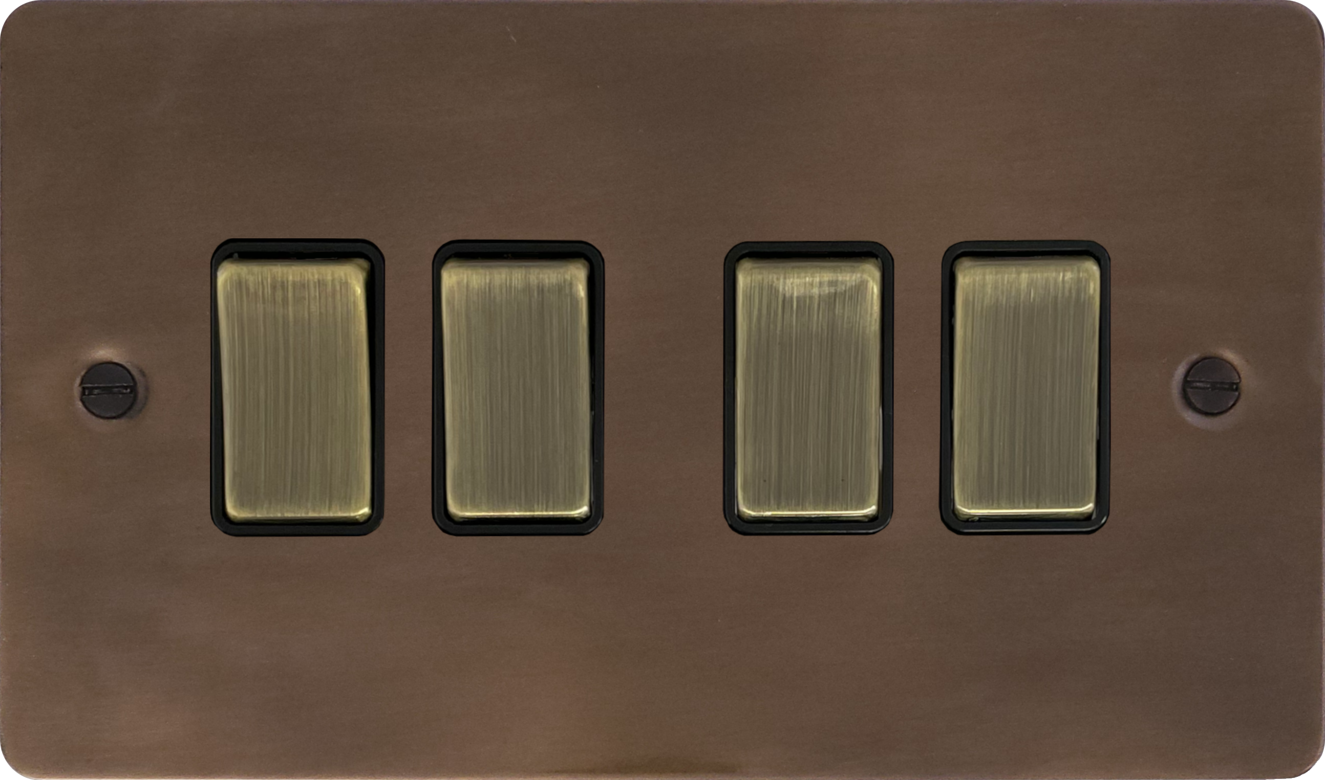 Flat Medium Bronze Light Switch (4 Gang/Black Insert/ Antique Brass Switches)
