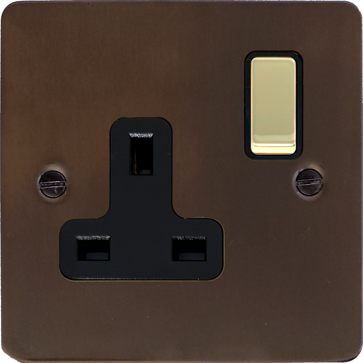 Flat Medium Bronze Single Socket (Black Insert/Polished Brass Switch)