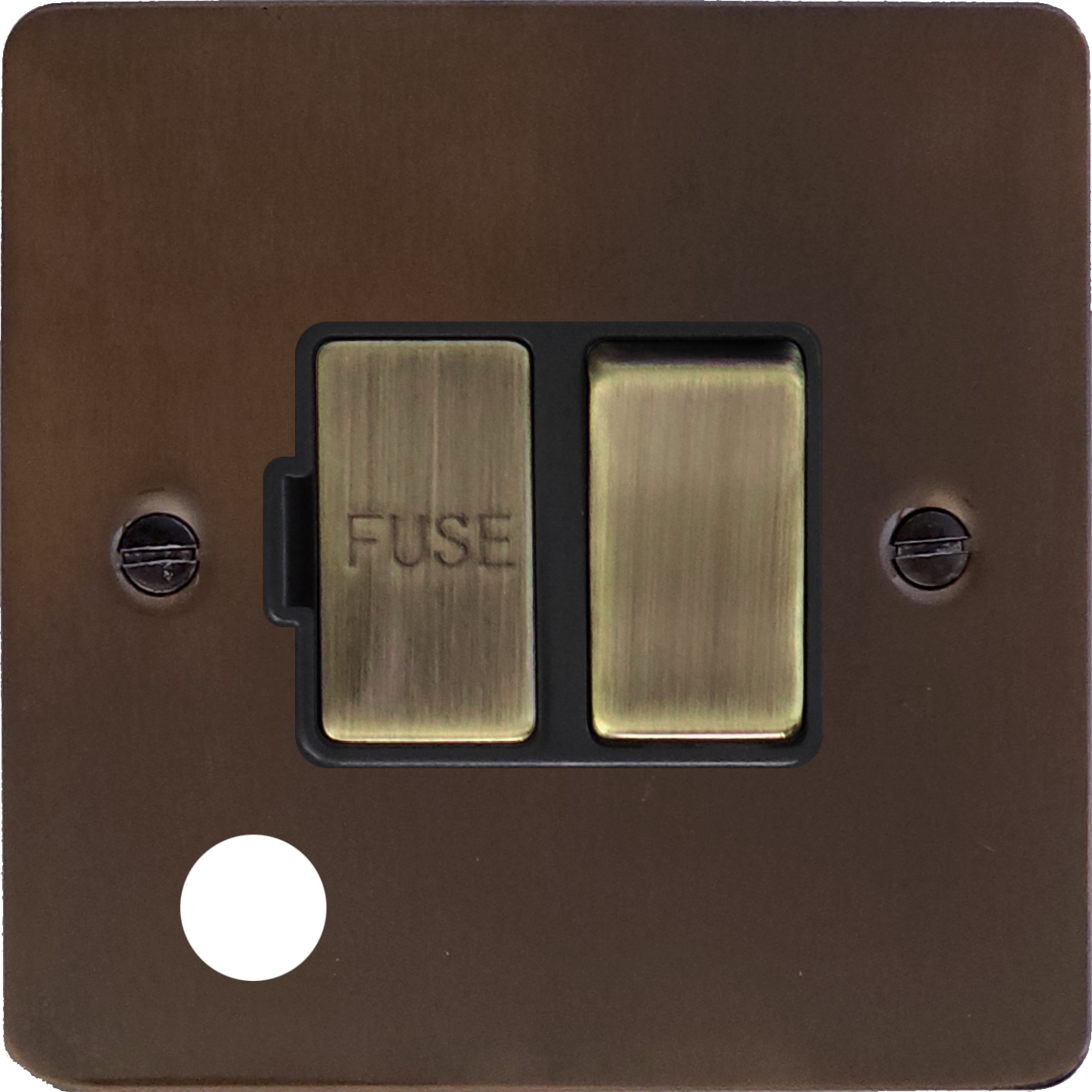 Flat Medium Bronze Switched Fused Spur with Flex Outlet (Black Insert/Antique Brass Switch)