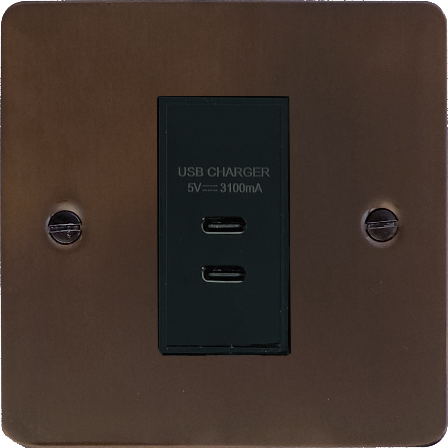 Flat Medium Bronze USB Charger (2x USB-C) (1 Gang)