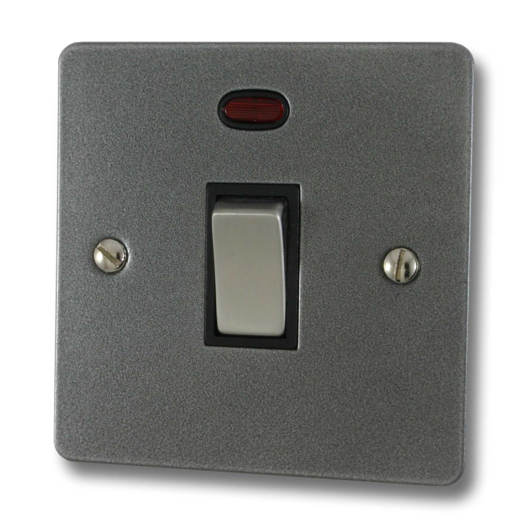 Flat Pewter 20A DP Switch with Neon (Black Insert/Satin Chrome Switch) - G+H FP326