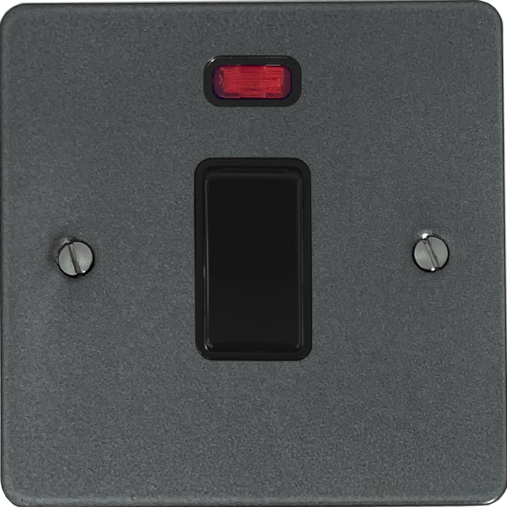Flat Pewter 20A DP Switch with Neon (Black Switch) - G+H FP26B