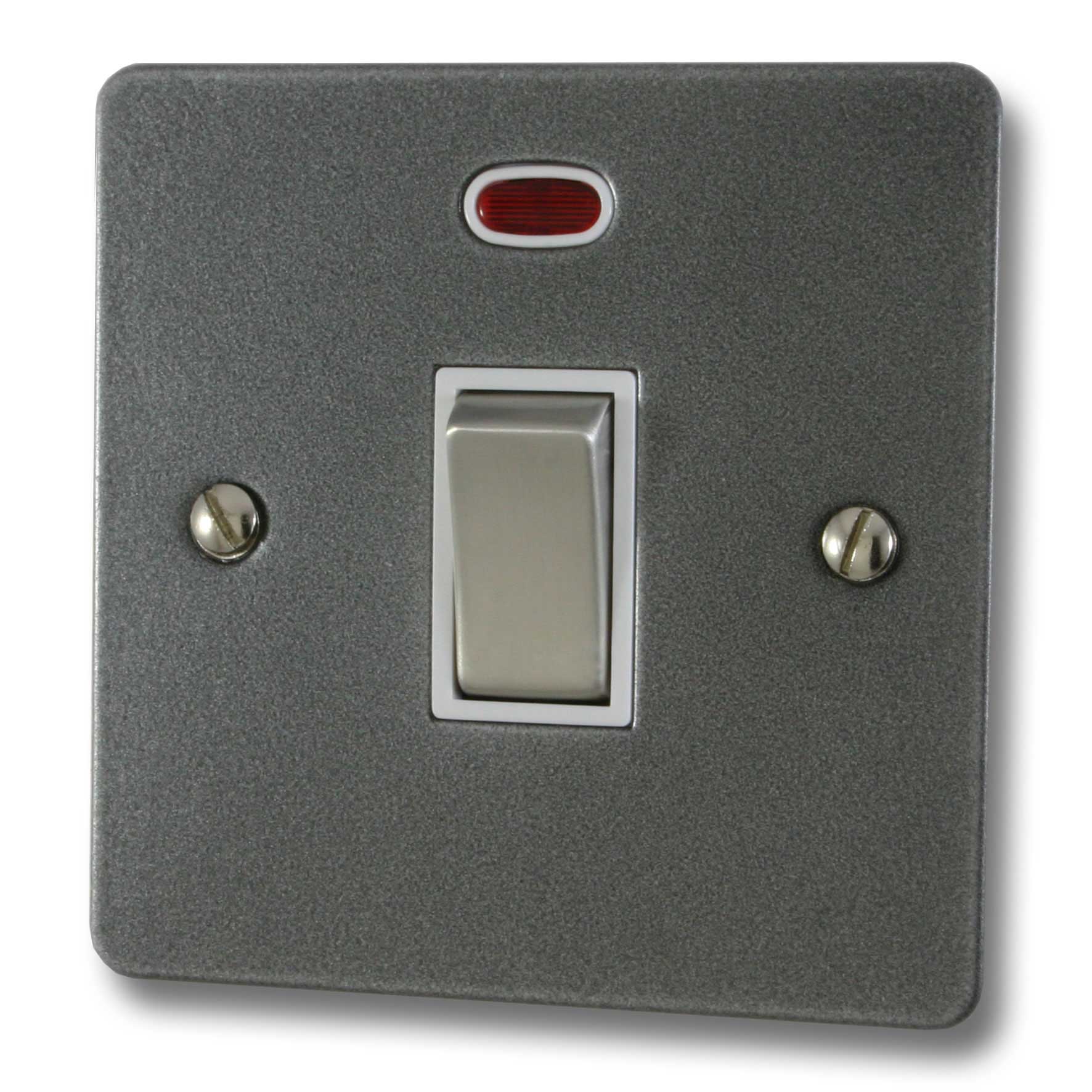 Flat Pewter 20A DP Switch with Neon (White Insert/Satin Chrome Switch) - G+H FP226