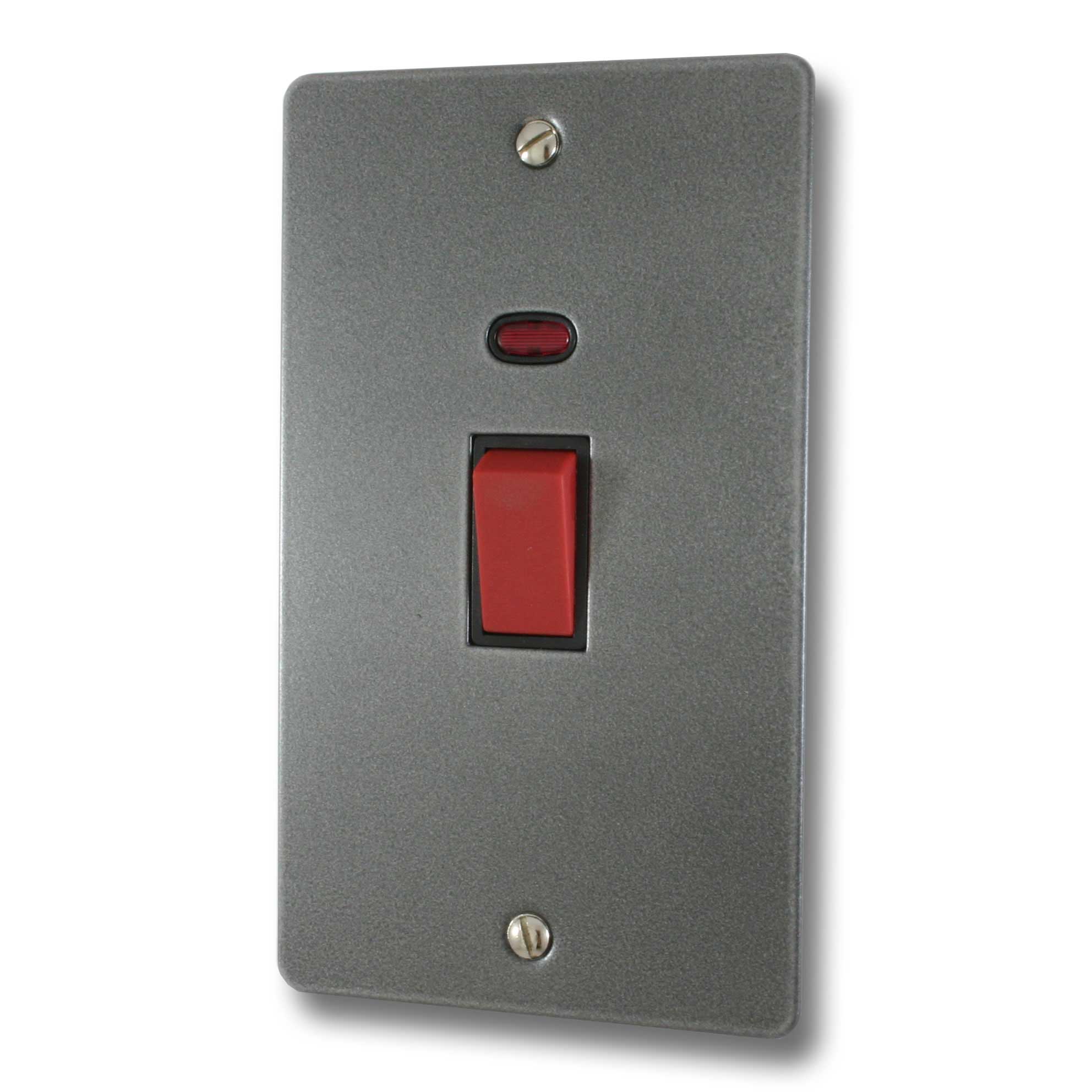 Flat Pewter 45A DP Switch with Neon (Black Insert/Red Switch/Vertical Plate)