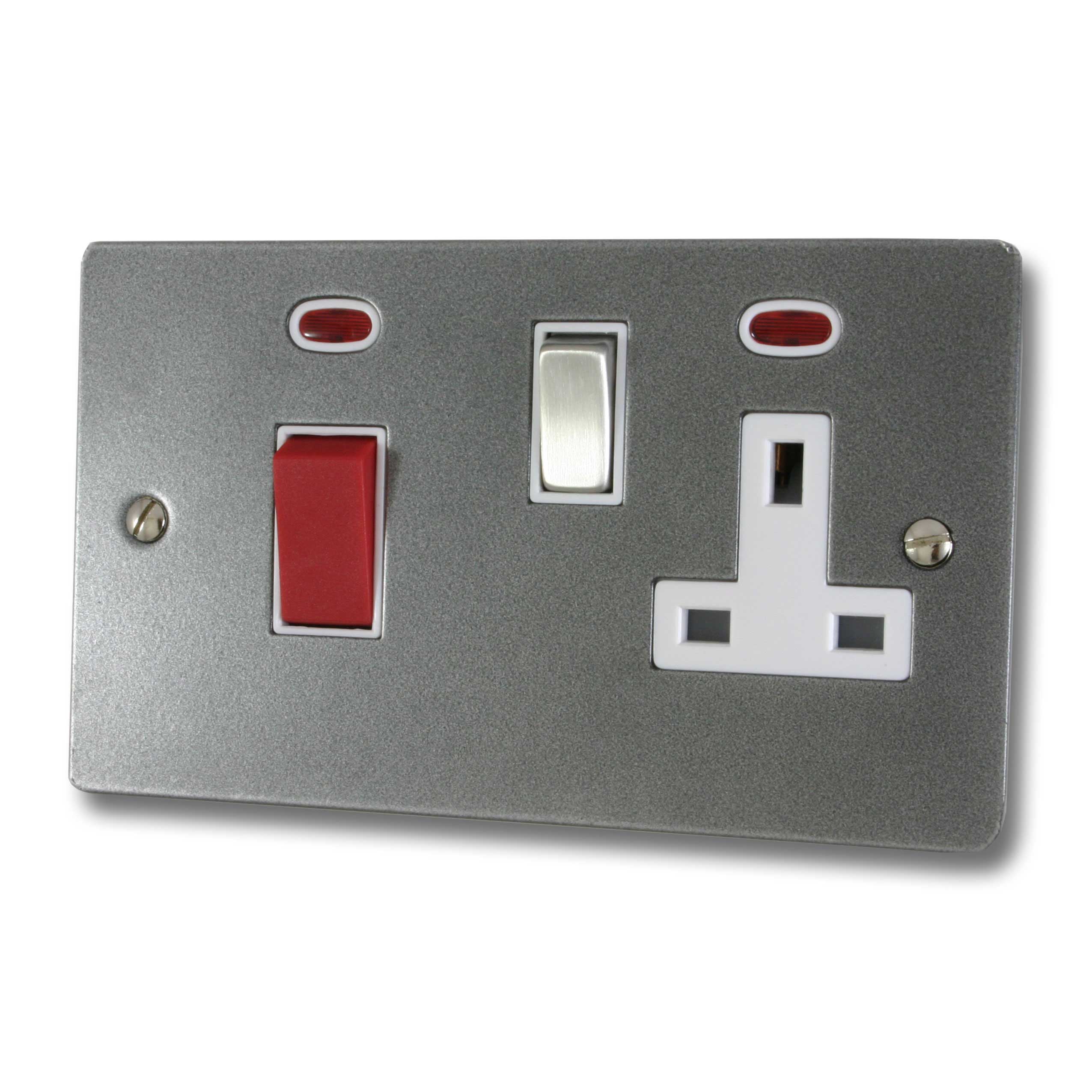 Flat Pewter Cooker Switch with Socket (White Insert/Steel Switch)