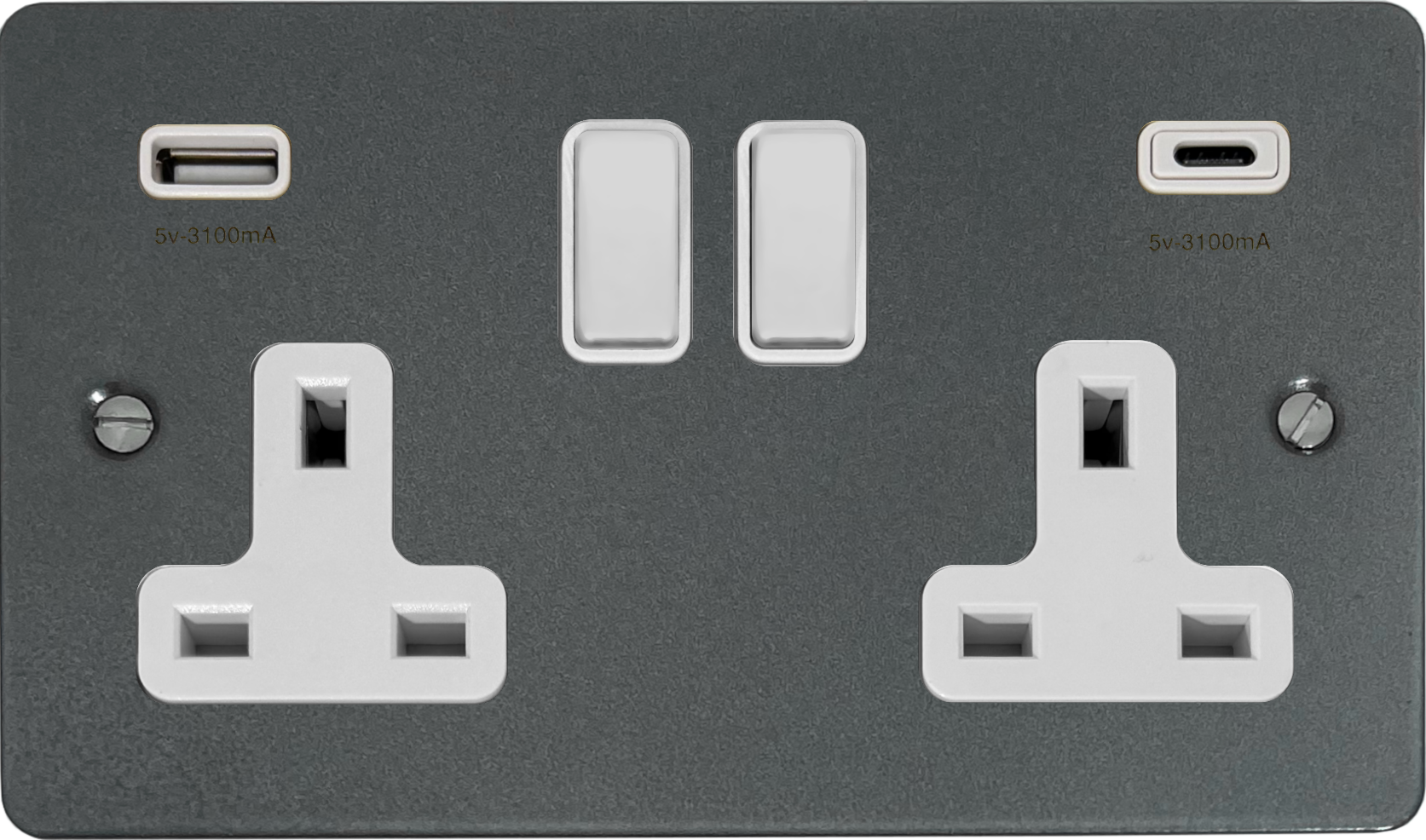 Flat Pewter Double Socket with USB (2 Gang/USB-A and USB-C/White Switches) - G+H FP911W