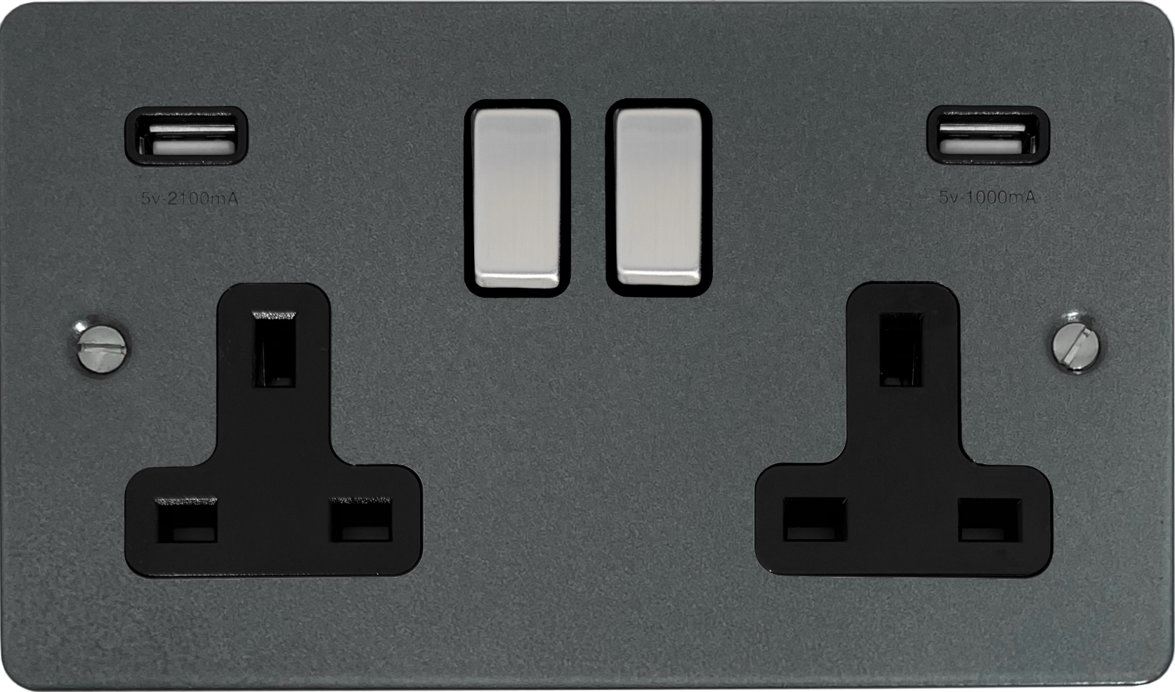 Flat Pewter Double Socket with USB (Black Insert/Steel Switches) - G+H FP3910
