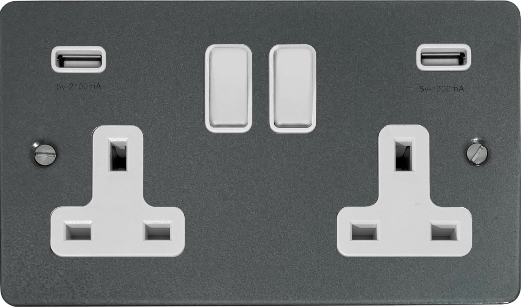 Flat Pewter Double Socket with USB (White Switches) - G+H FP910W